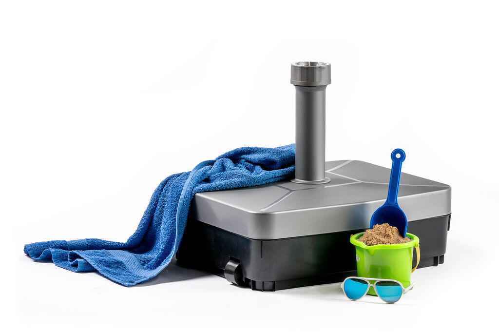 Faible poids et grande capacité de remplissage de 45 kg avec de sable, pour parasols jusqu'à Ø 360 cm avec un mât de 19-54 mm