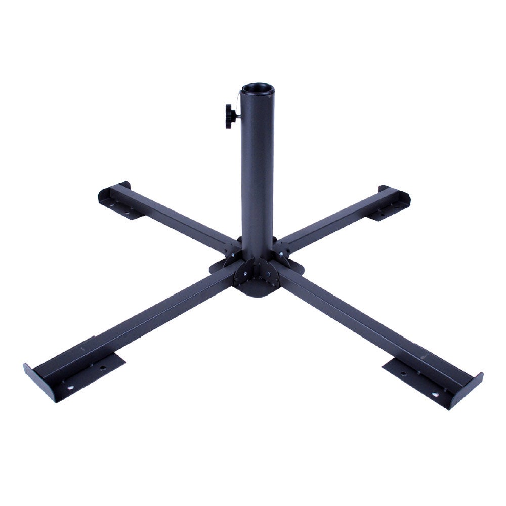 - Socle en croix pour parasol, en acier robuste, dimensions 86x86x34 cm, couleur noire