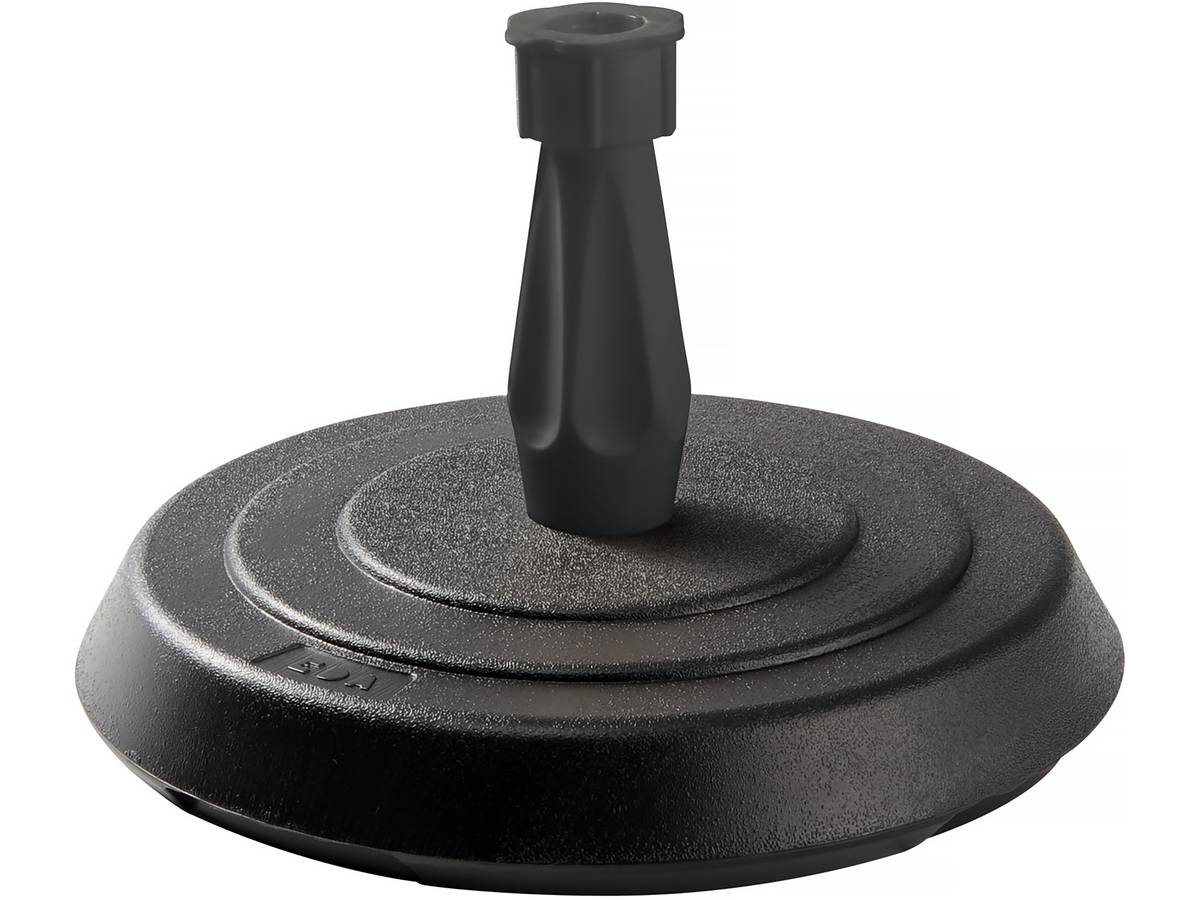 Pied de parasol rond - ø39 x 25 cm - Béton - ø1.8 à 3.3cm.Couleur:Gris foncé.Socle:Polypropylène.Diametre :39 x 25 cm.Longueur :ø1.8 à 3.3 cm.Poids :14 kg.Mât:Ø 1,8 à 3,3 cm.Les + produits : Anti UV Résistant au gel Aucun remplissage nécessaire.Colisage:1 colis : - 0,42 x 0,385 x 0,085 m, 14,206 kg.