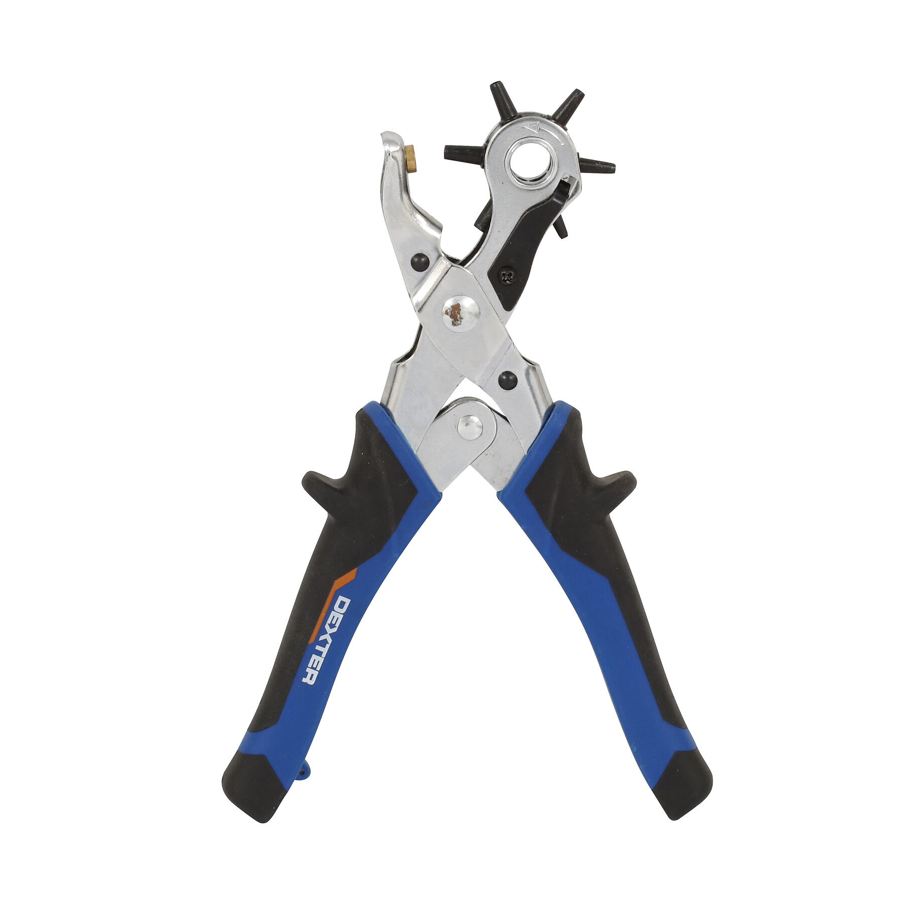 Pince perforatrice Dexter avec lame en acier au carbone, 6 diamètres de perforation différents allant de 2mm à 4mm. Pince perforatrice pour le cuir, le papier, les tissus, et plastiques souples. Percez vos ceintures, vos chaussures, vos cartes, vos sacs et bien d'autres choses !