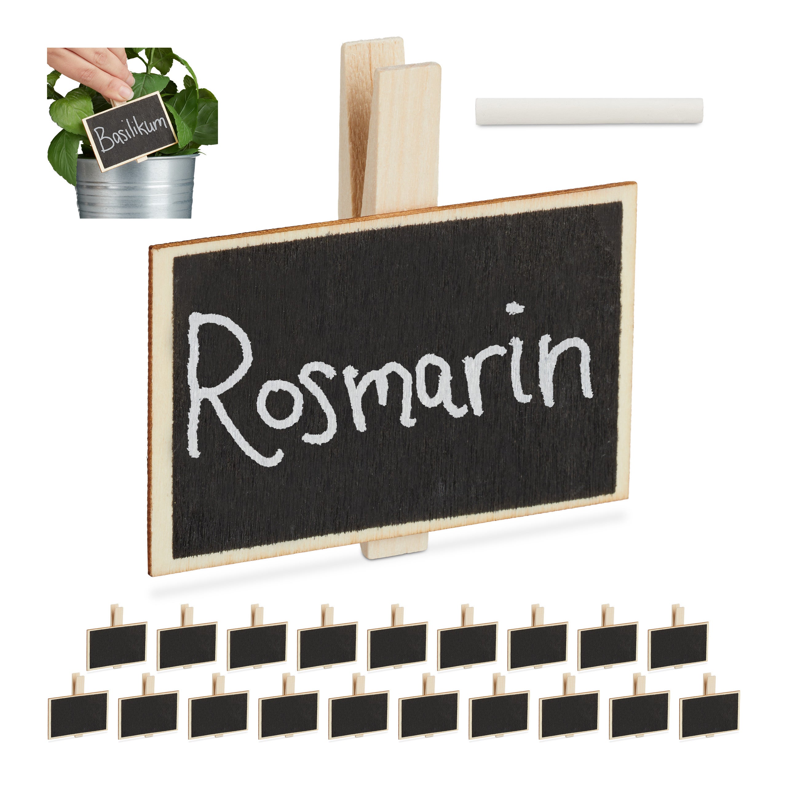 Embellissez les pots d’herbes sur votre balcon ou dans votre appartement à l’aide de ces mini tableaux; une sensation qui décore chaque intérieur. Vous pouvez avec la craie livrée écrire sur les tableaux. Dans ce cas les pinces tableau sont réutilisables. Nettoyer avec un chiffon mouillé et utilisez à nouveau. Les pinces avec tableau sont utilisables à plusieurs fins et font belle figure également de mariage ou comme affichage des prix dans une boutique de fleurs.