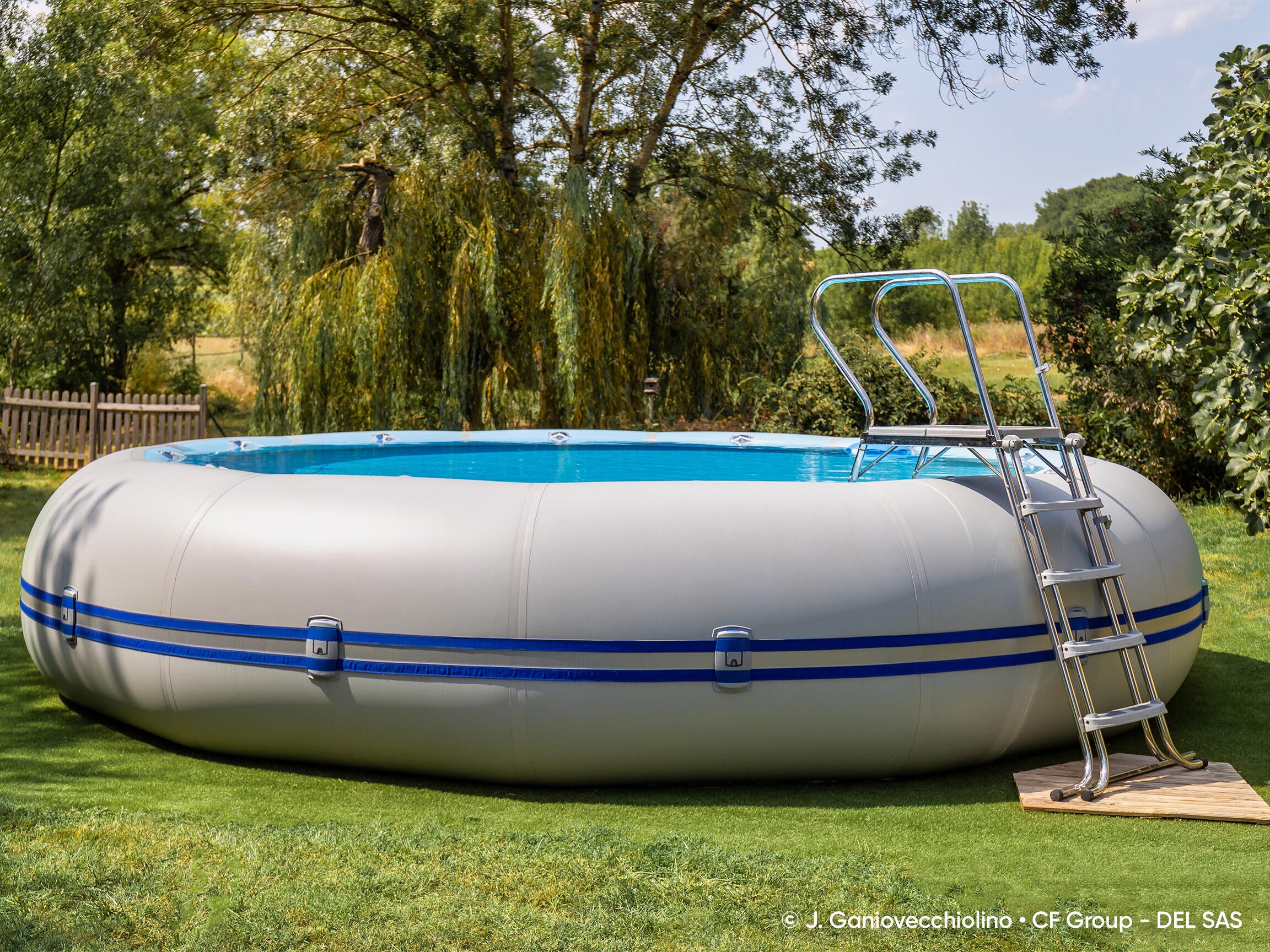 Fabrication française - Système breveté - Garantie du bassin 5 ans, garantie de la filtration 2 ans, garantie de l'échelle 1 an - Revêtement multicouches souple fortement résistant à la déchirure - Gain naturel de température - Un concept unique de bassin - Kit complet facile à monter.