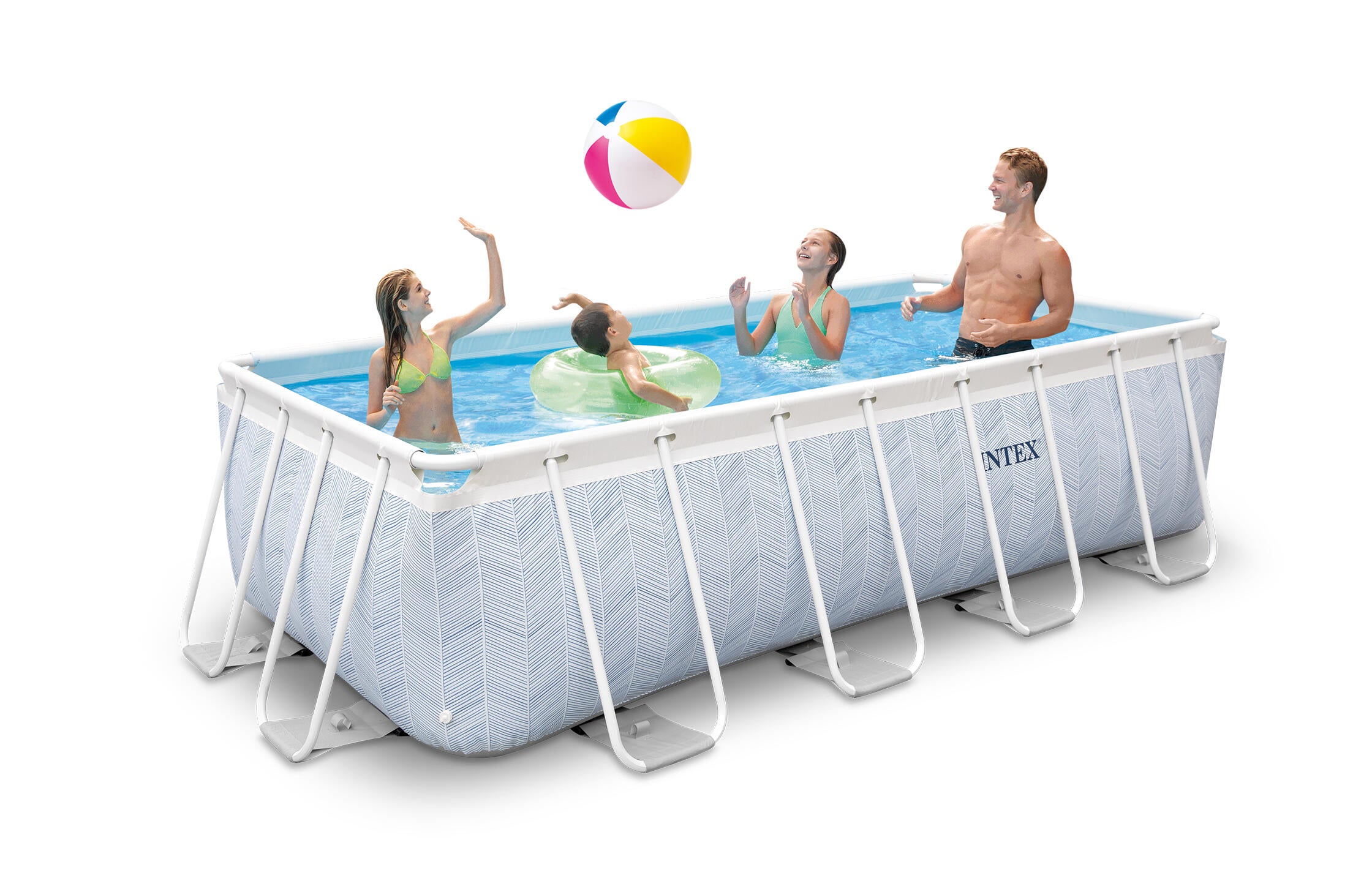 Découvrez la piscine tubulaire rectangulaire Chevron Intex et son motif ethnique clair et moderne. Ce nouveau design épuré apportera une touche décorative originale à votre extérieur.