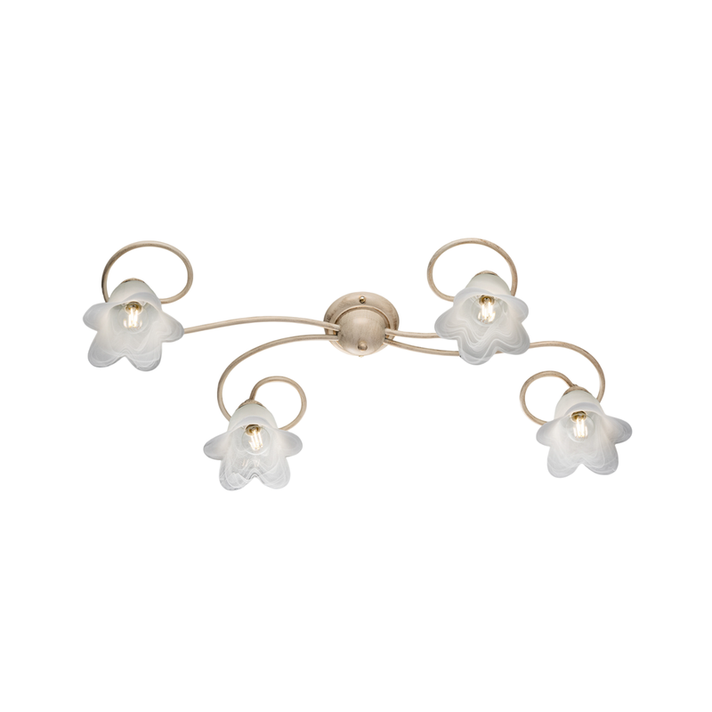 Plafonnier Alice ivoire, déco or antique, verre albâtre d.14, 4 lumières 87x40 cm, idéal entrée ou couloir