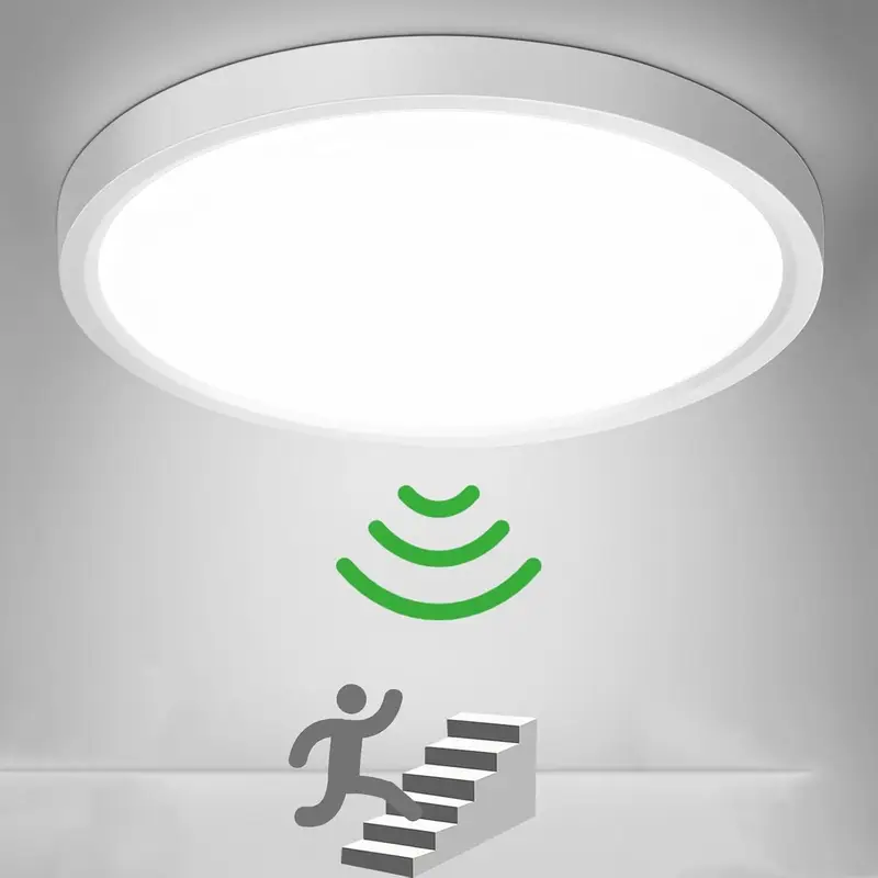 Plafonnier avec détecteur de mouvement pour l'intérieur, 24 W 2400 LM Plafonnier rond, diamètre 30 cm, détecteur de mouvement ultra-mince comme cor