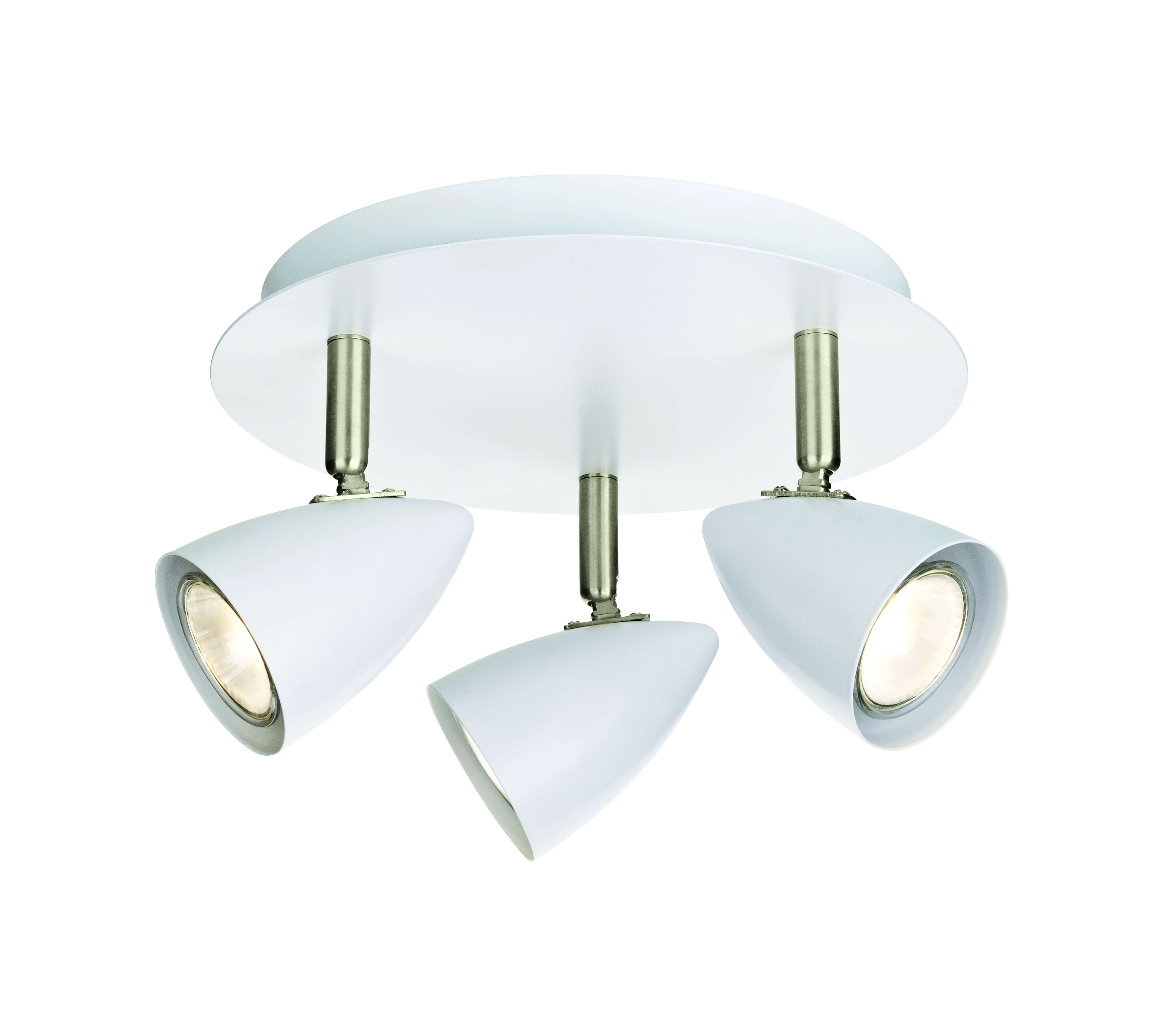 Diamètre en Cm : 26 Profondeur en Cm : 26 Hauteur en Cm : 16 Poids en Kilos : 0,95 Matériau : Métal Matériau de l'abat jour : Métal Coloris : Blanc Coloris de l'abat jour : Blanc Nombre d'ampoules : 3 Type d'ampoule : GU10 Puissance en W : 7 Ampoules Incluses : Non IP : 20 Classe de protection : 1 Voltage : 230V