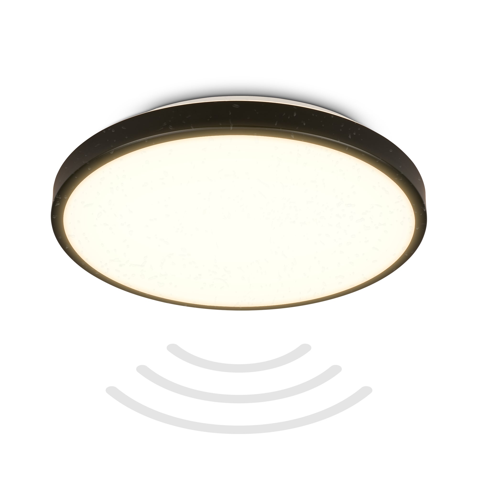 Plafonnier LED étanche avec détecteur micro-ondes - IP54 - Ø290 mm - Noir - Blanc chaud 3000K - 13W - 1300lm - B.K.Licht