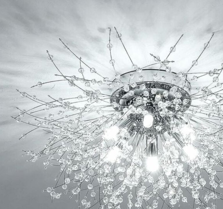 【Design exquis】: le plafonnier moderne a un look unique. L'utilisation d'une combinaison de cristal et de finition chromée, la texture est translucide, avec le corps de la lampe est plus à la mode et belle, dans la réfraction de la lumière brillante et lumineuse, de loin comme un feu d'artifice en fleurs, magnifique et éblouissante, pour votre maison pour créer une atmosphère d'éclairage charmante.