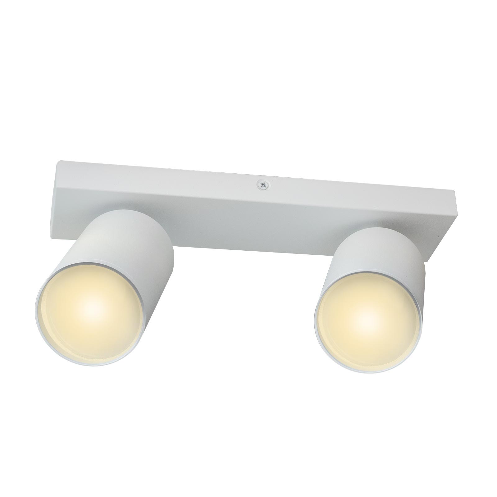 Plafonnier moderne en aluminium de forme rectangulaire adapté à une installation au plafond ou au mur équipé de 2 spots réglables avec l'ampoule GU10 interchangeable idéal pour l'éclairage des entrées, couloirs, cuisines modernes, bureaux, magasins, vitrines. Disponible en blanc