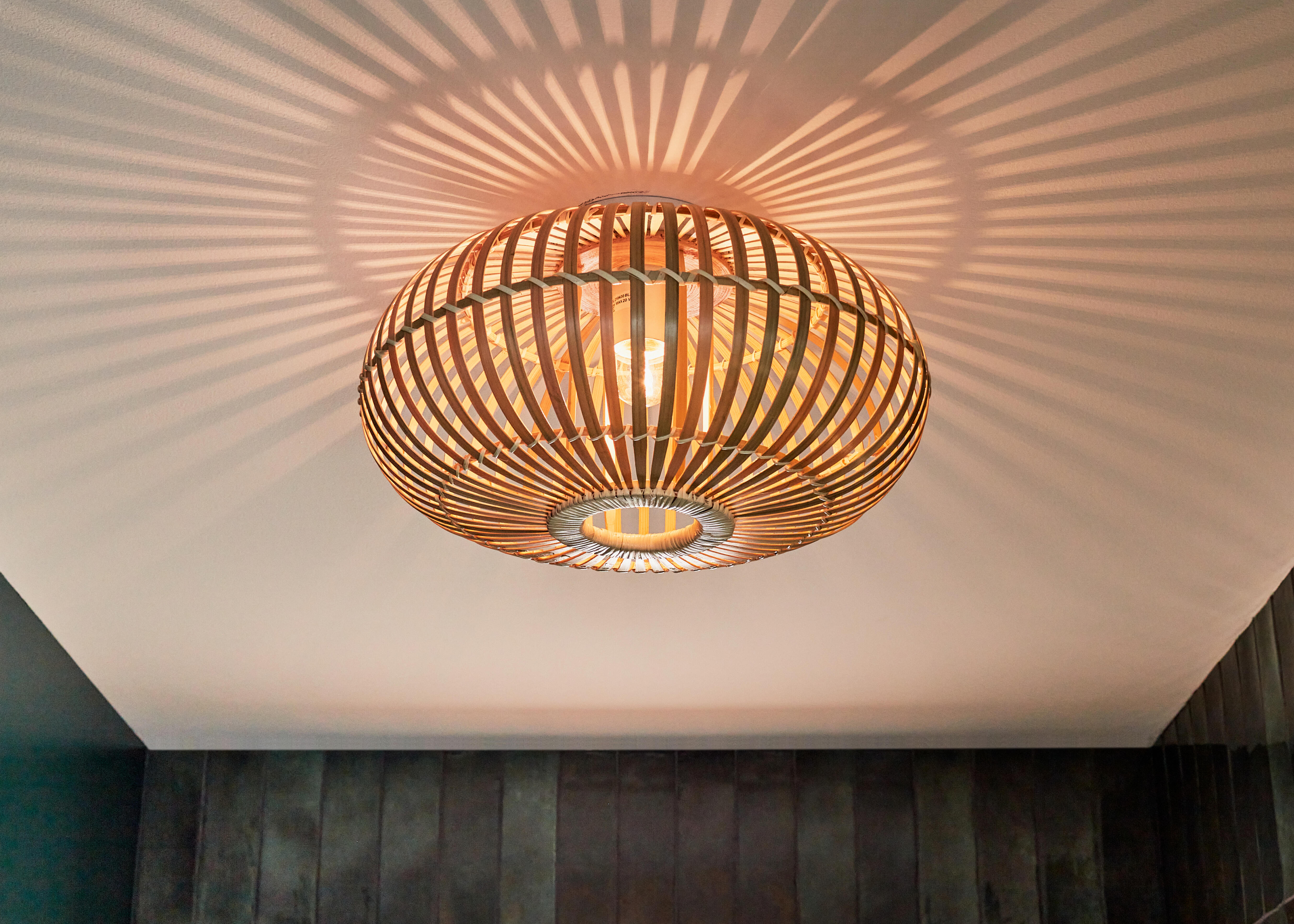 Naturelle et authentique, un plafonnier en bambou qui apporte une jolie note d'exotisme dans votre salle de bains. Finement ajouré, il diffuse une lumière chaleureuse en créant de beaux effets sur les murs et le plafond. L'ampoule E27 est vendue séparément pour vous permettre de choisir votre couleur de lumière : blanc chaud ou lumière blanche selon vos souhaits.