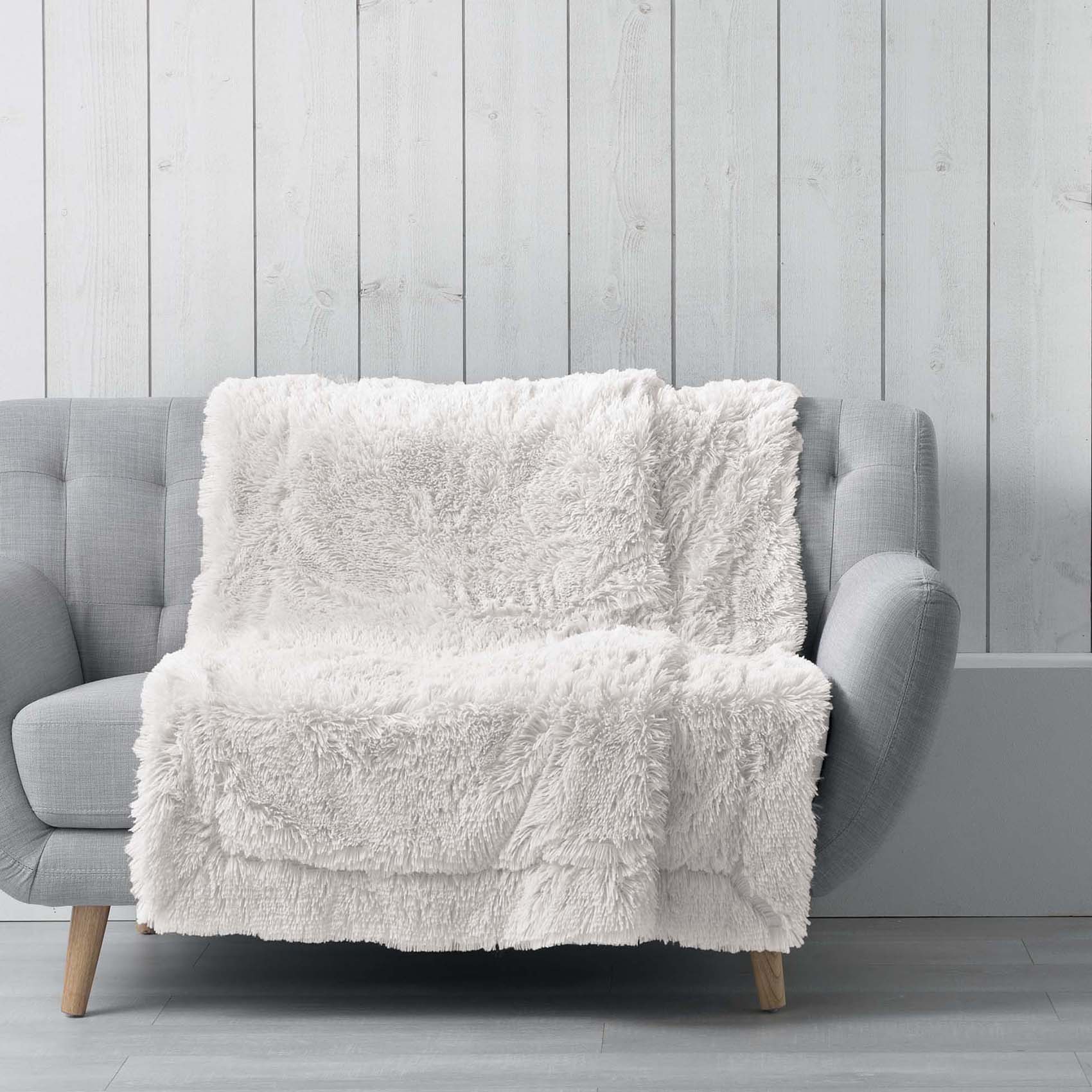 Plaid douceur à poils longs - Blanc - 125 x 150 cm - Polyester