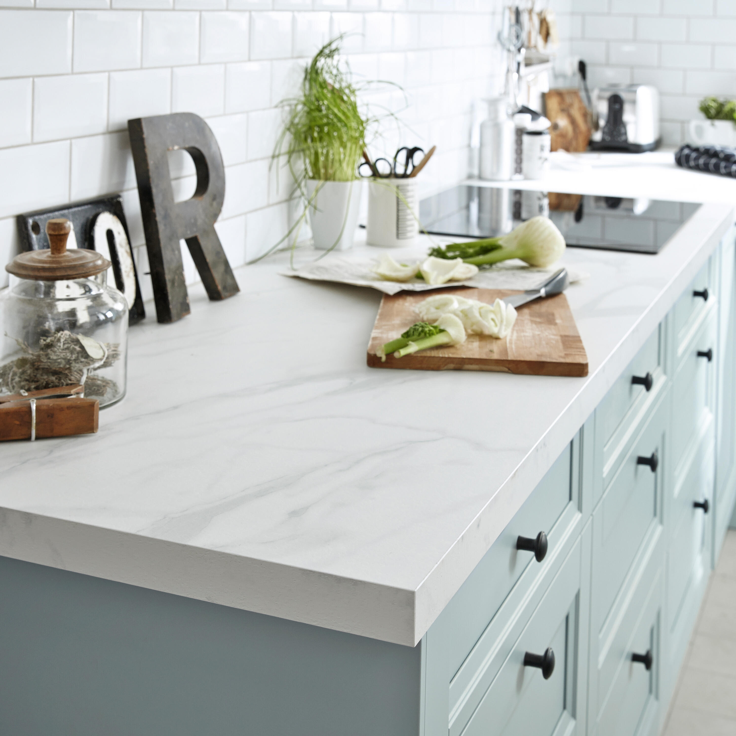 Plan de travail stratifié épaisseur 38mm,aspect marbre blanc, finition lisse et mate avec décor. Existe en épaisseurs 16 et 58mm. Chants latéraux inclus. Les plans stratifiés en 38mm sont adaptés à tous les usages aussi bien dans la cuisine que dans les autres pièces de la maison. Produit disponible en sur-mesure.