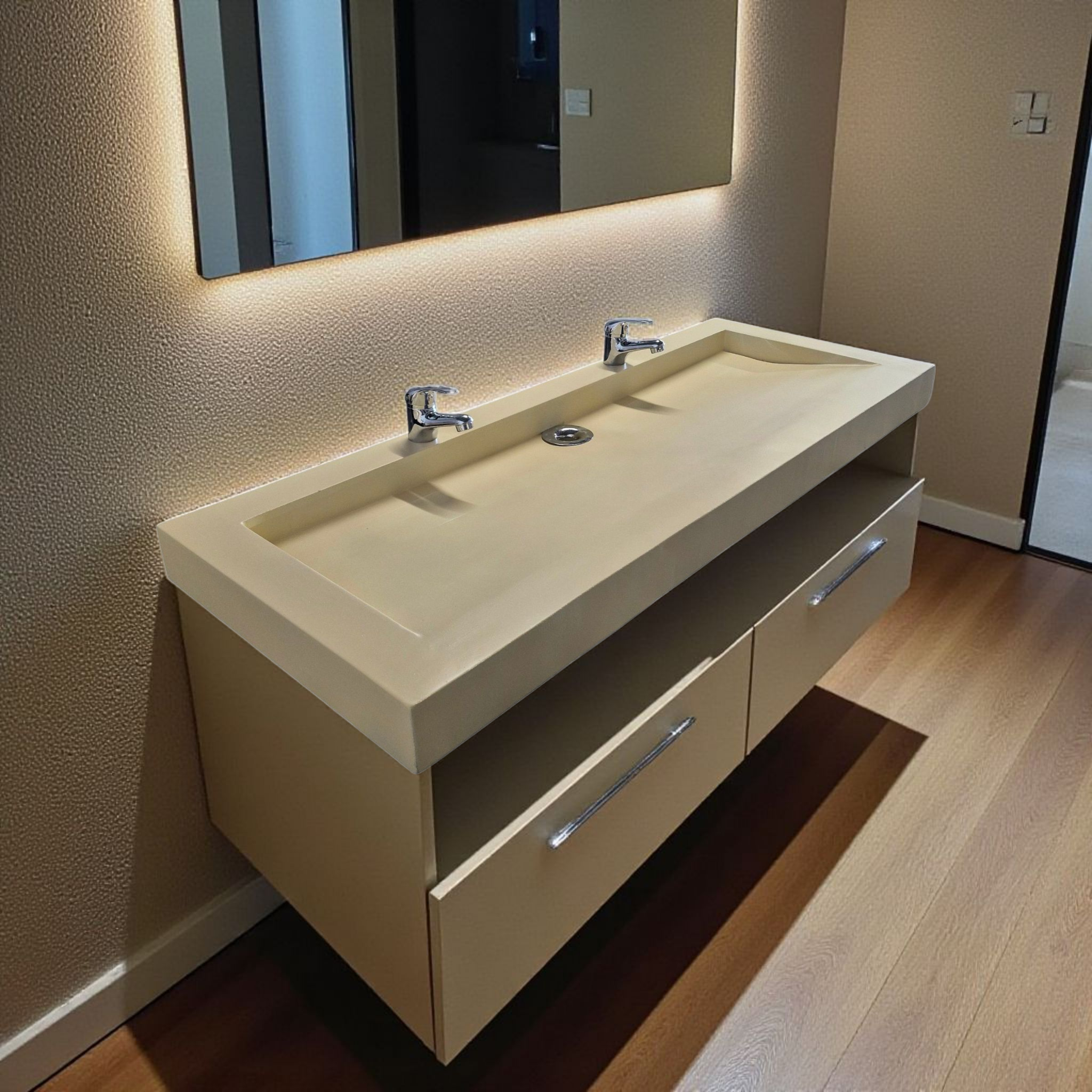 Plan double vasque beige 100x47x8 édition céleste en béton fibré cimenté , fabriqué artisanalement en France par Gakeal