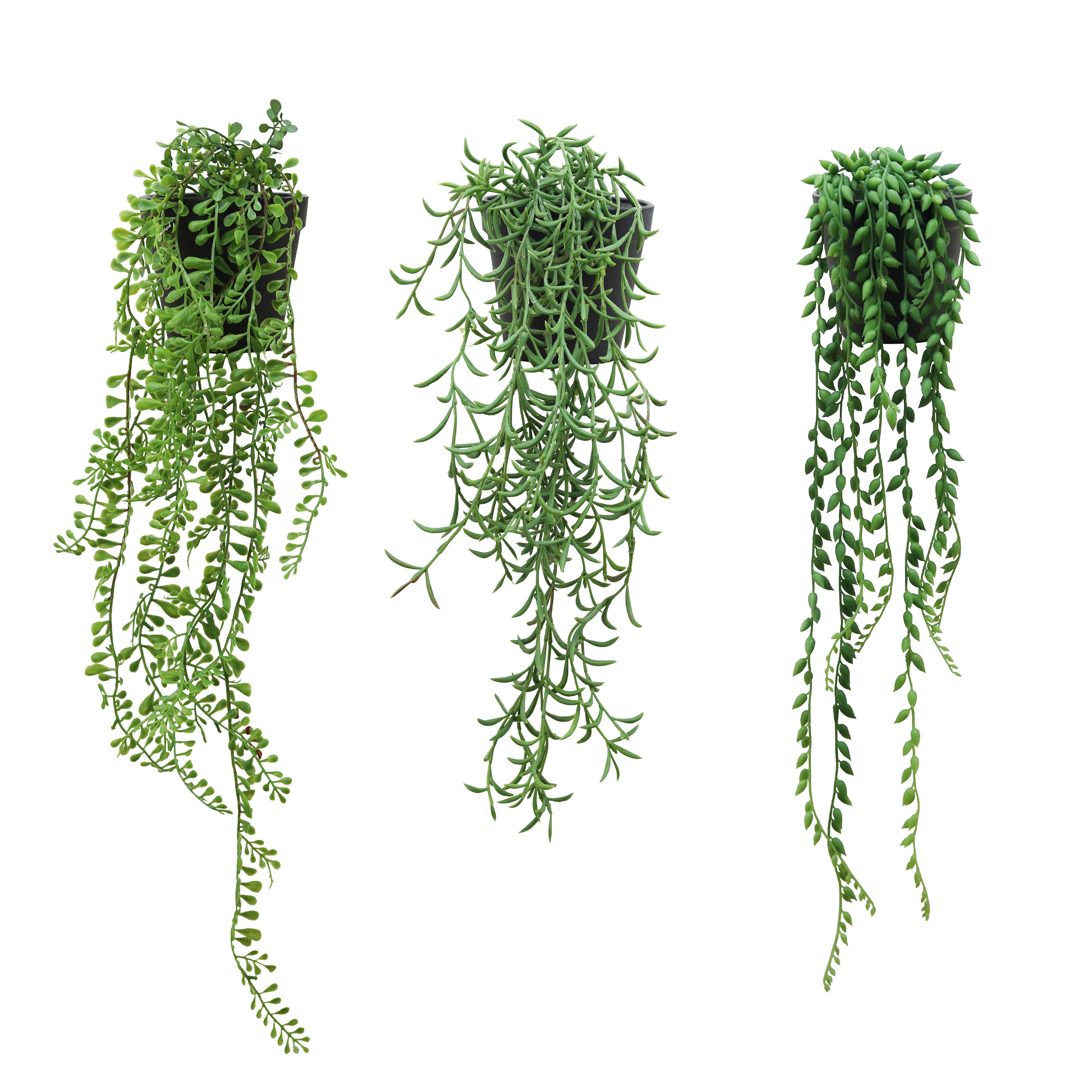 Succulente retombante en pot plastique noir - H50/60cm - 3 modèles assortis