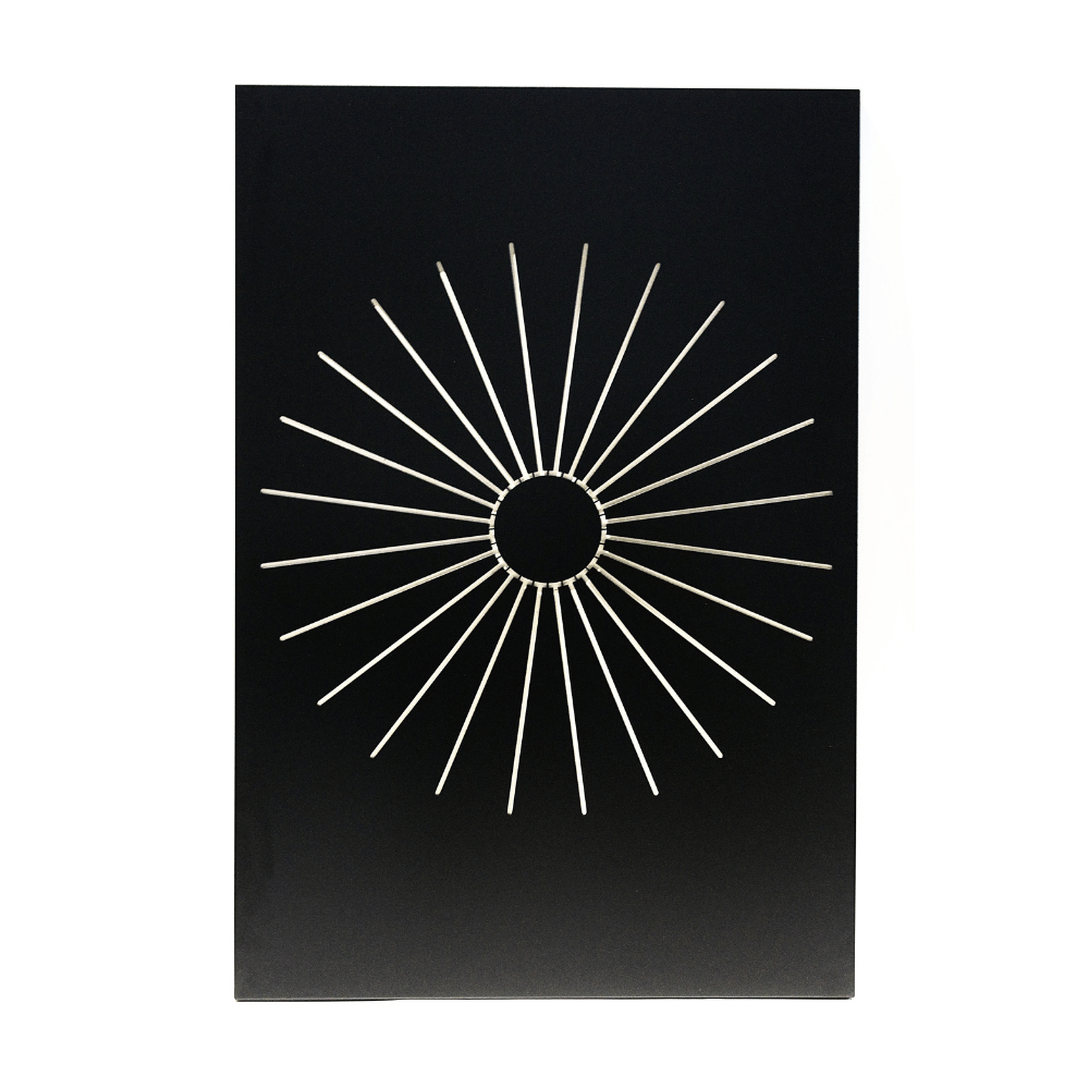 - Design solaire stylisé : motif graphique évoquant un soleil pour une intégration élégante dans les intérieurs modernes ou rustiques.