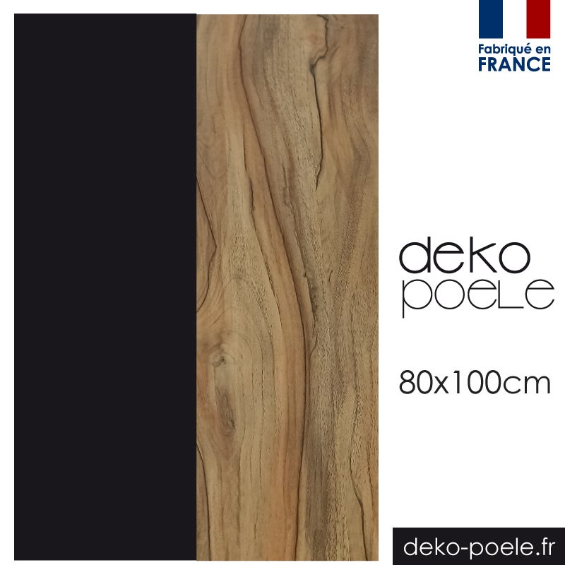 Plaque de protection murale Design Noir + Effet Bois Chêne | Largeur 80 - Hauteur 120cm | deko-poele.fr