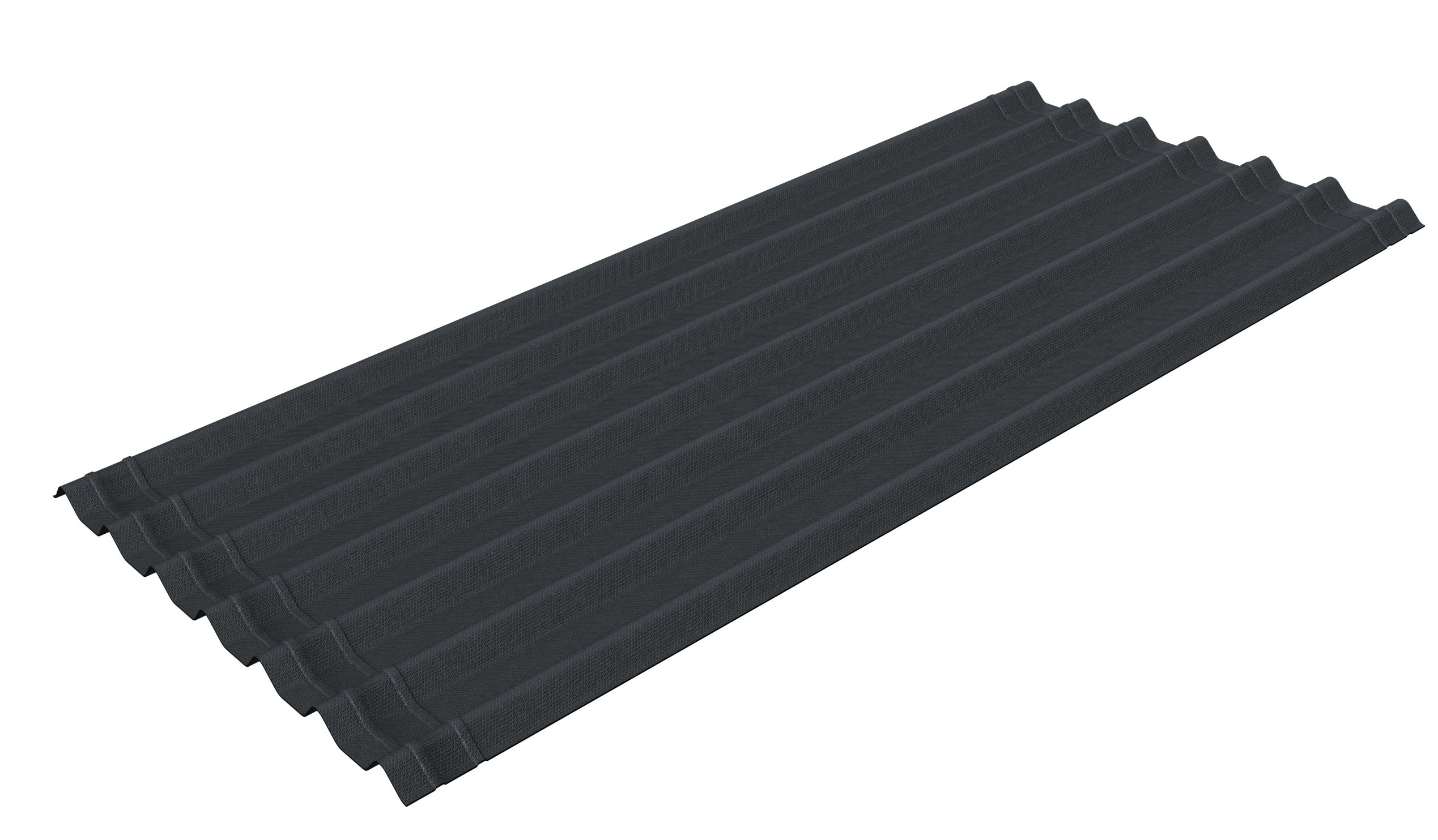 Plaque de couverture bitumineuse Onduline Easyfix anthracite 200 x 82 cm. plus de 50% de matière recyclée. Garantie étanchéité 10 ans