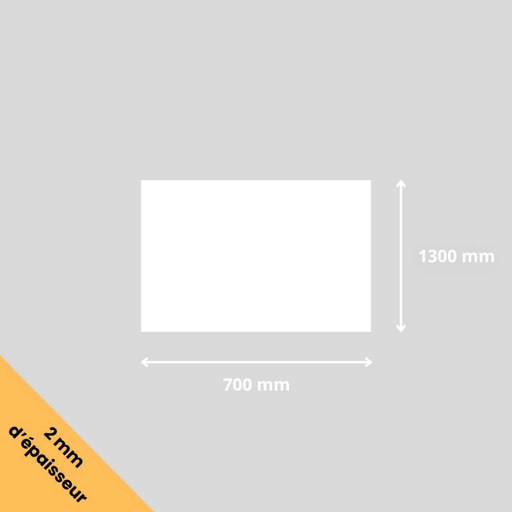 Plaque en verre acrylique blanc de 700x1300mm, vendue à l’unité. Cette plaque a une épaisseur de 2 mm et est fabriquée en plexiglass rigide (PMMA), un matériau léger, solide, résistant aux UV et à l'humidité. Ce produit est adapté à de nombreux usages comme la décoration, le bricolage, la protection de surfaces, le modélisme ou encore la fabrication de cadres et vitrages. Le plexiglass se découpe, se perce et se colle facilement, ce qui le rend simple à utiliser pour des projets personnalisés en intérieur comme en extérieur. Cette plaque est livrée avec un film protecteur sur chaque face, qu’il faut impérativement retirer avant utilisation pour obtenir une surface lisse, brillante et propre. Cette matière est une alternative pratique et résistante au verre, avec une manipulation plus sûre et plus souple.