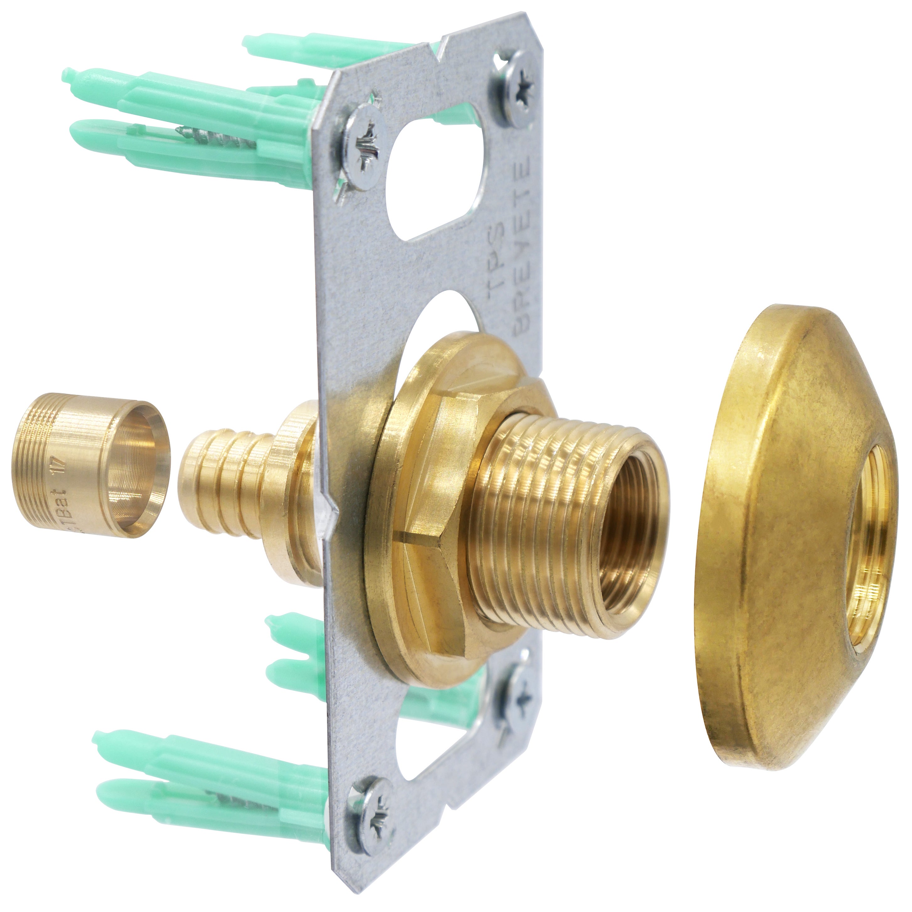 Système breveté garantissant fiabilité, rapidité et facilité de pose / Sortie femelle 1/2 (15x21) pour le raccordement direct d'un robinet d'extérieur / Platine métallique anti-arrachement et anti-rouille / Réglage du raccord en profondeur grâce au système d'encoches / Installation PER entièrement visitable