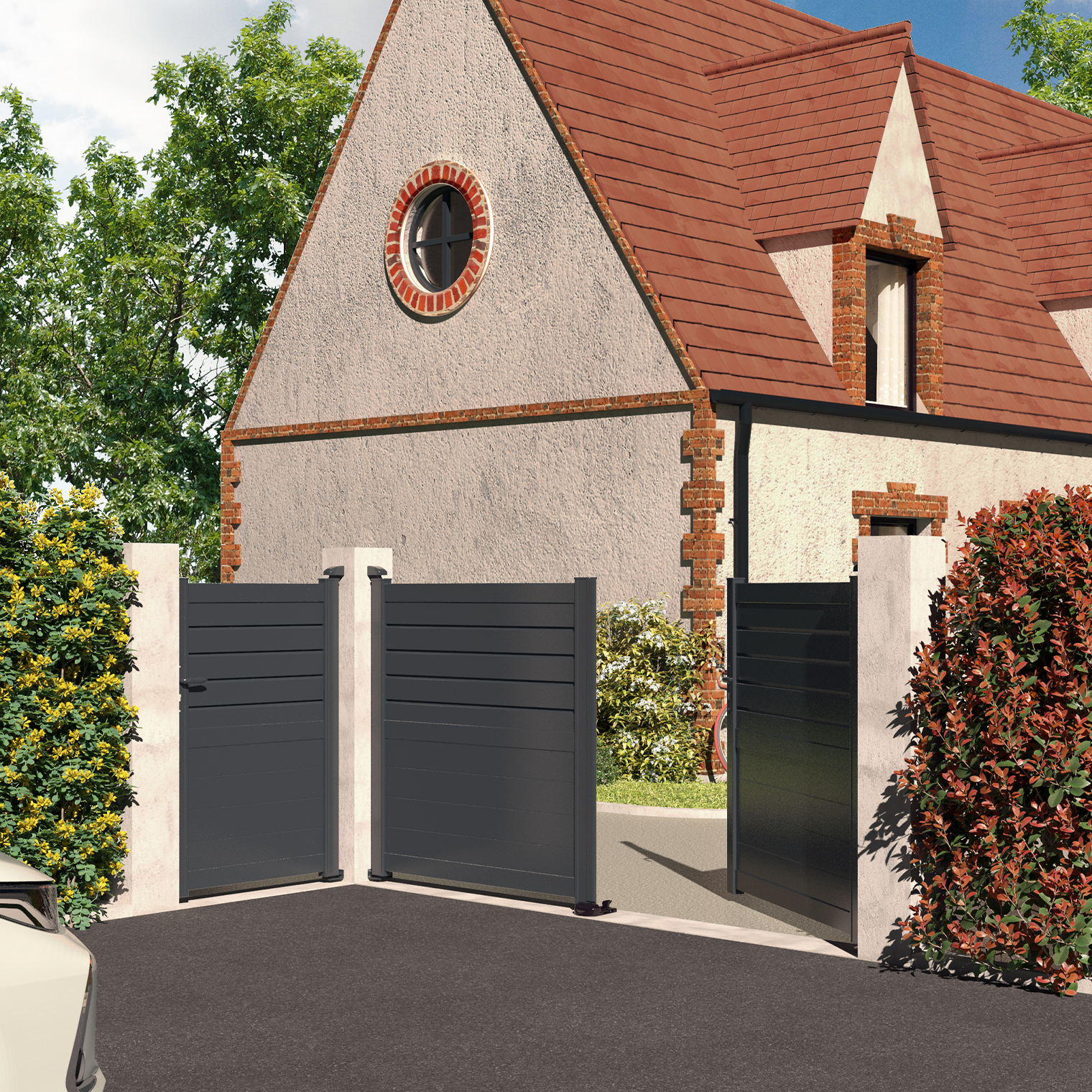 Portail battant aluminium Carnac gris zinc Klos up!, l.299 x H.175.8 cm