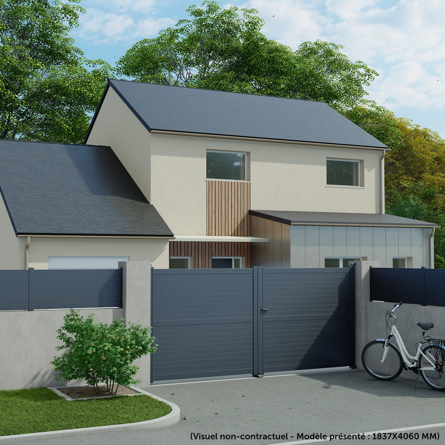 Initialement publié sur Portail battant alu Concarneau gris zinc Klos up!, l.349 x H.183.7 cm