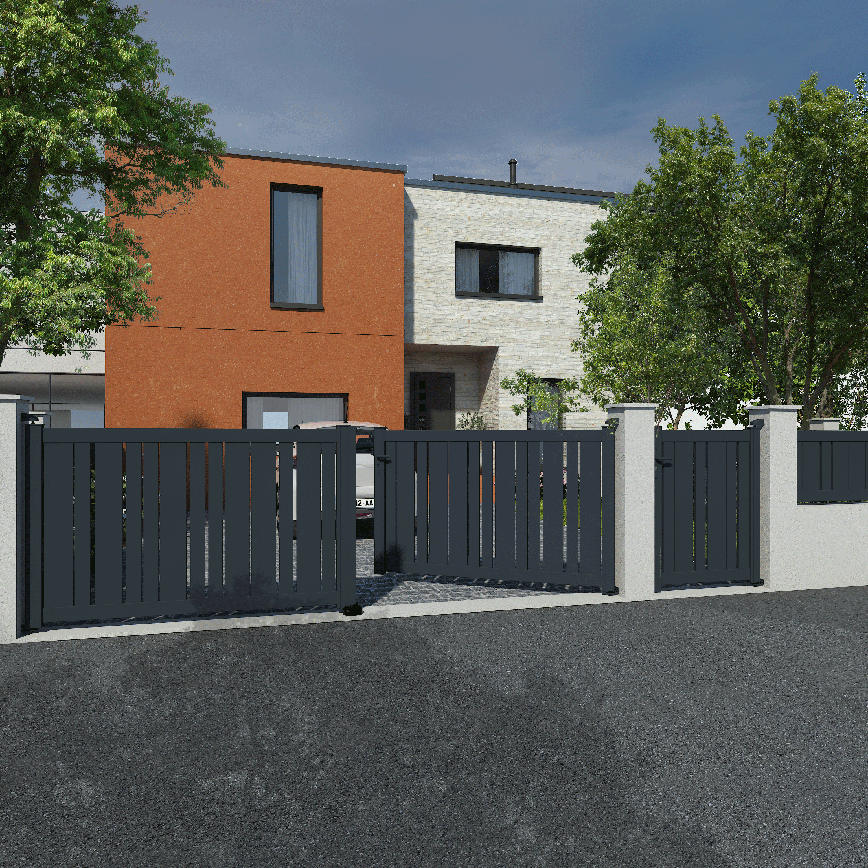 Portail battant aluminium Kaly gris zinc Klos up!, l.350 x H.155 cm