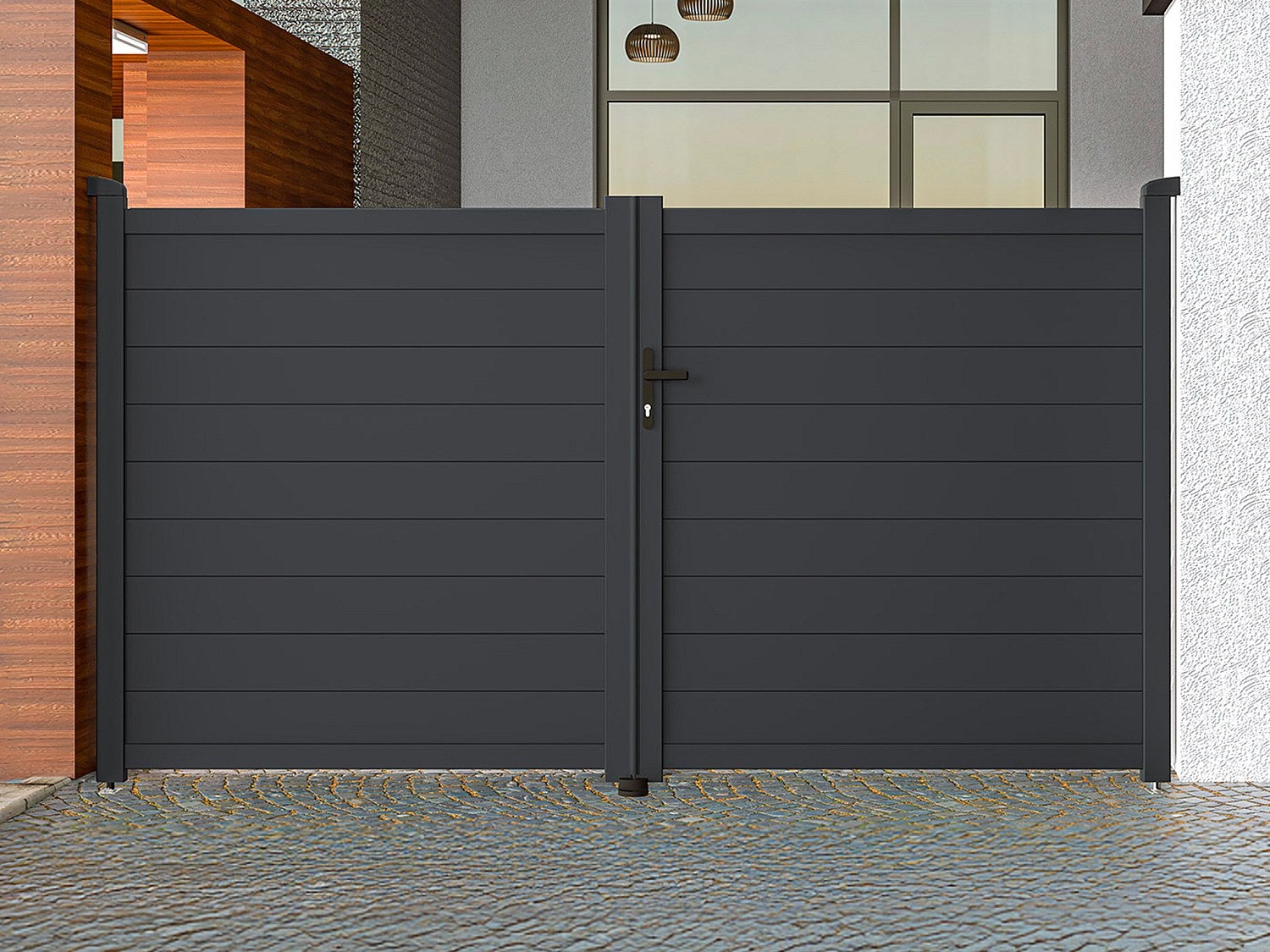 Portail battant aluminium plein L305 x H166 cm anthracite - NAZARIO