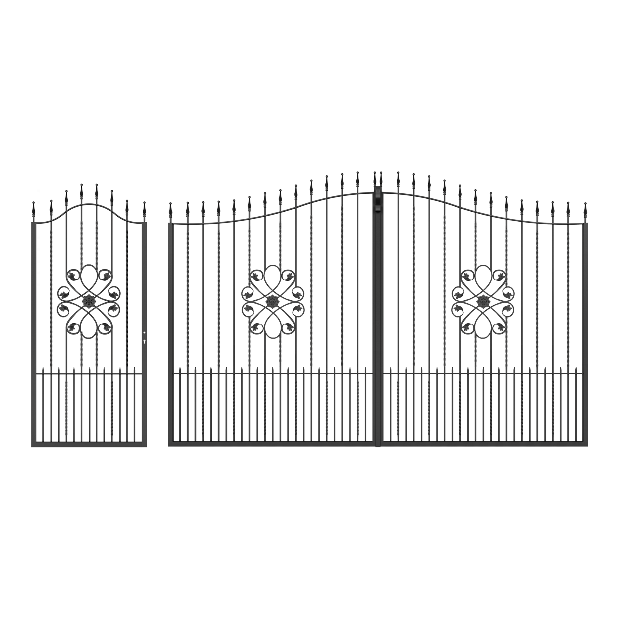Portail en fer forgé modèle 06 noir 428x180 (L x H) Portail avec jeu d'accessoires inclus Portail pour piétons et voitures