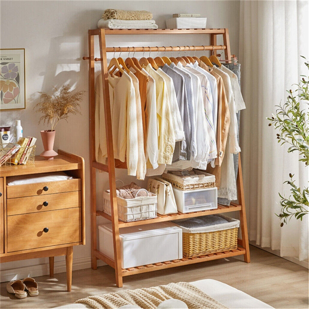 Portant À Vêtement Penderie Armoire Rangement pour Vêtements en Bambou pour Salon Chambre Dressing 43.5x80x165cm
