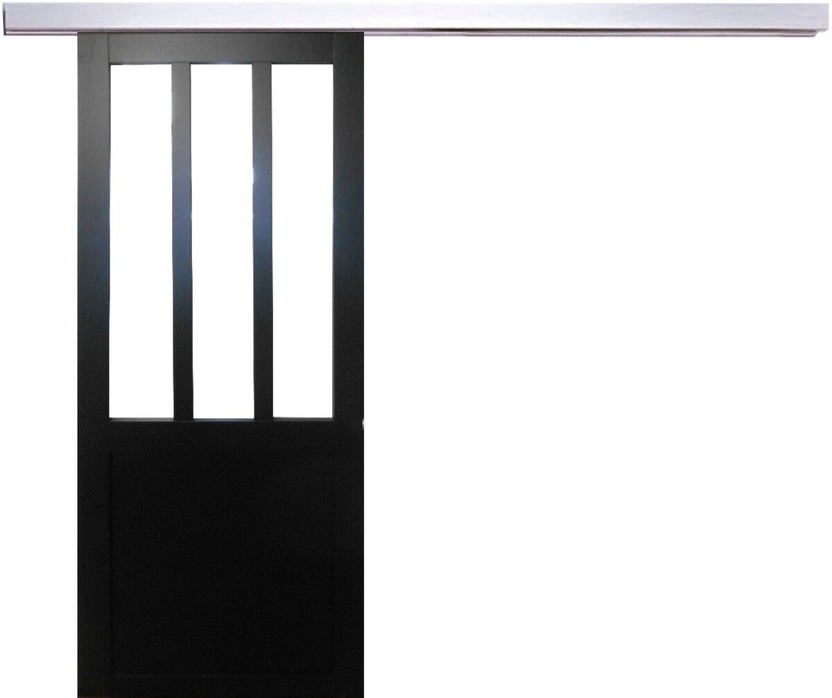 Porte Coulissante Atelier Noir Vitrée H204 X L73, Rail Alu Gd Menuiseries