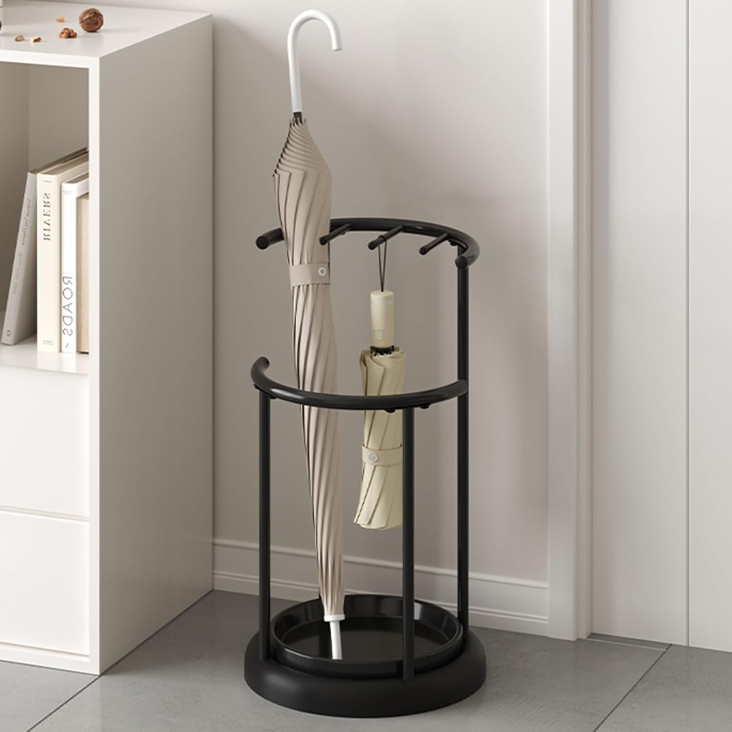 Rangement suffisant : Malgré son apparence discrète, ce support offre un espace généreux pour votre collection de parapluies. Il peut accueillir confortablement des parapluies à long manche pour les averses et des parapluies compacts et pliables pour les petites pluies.
