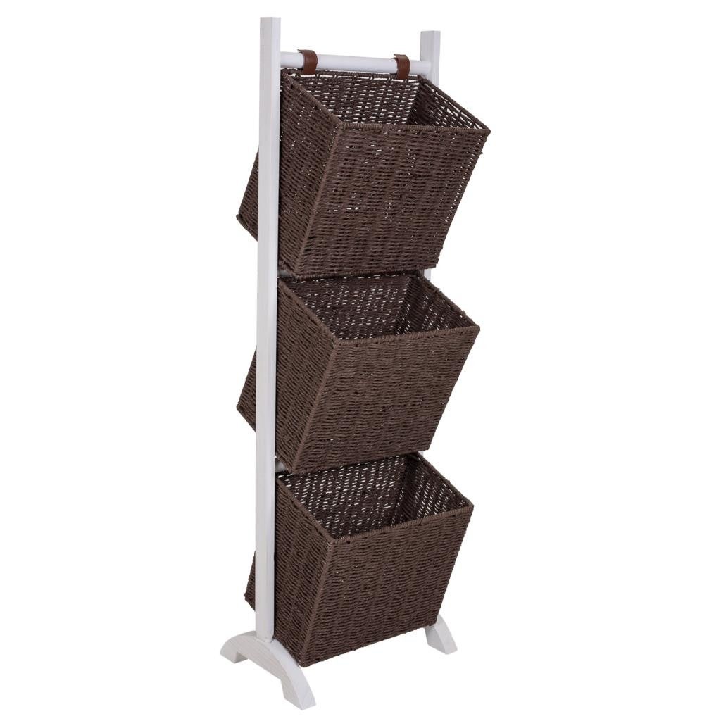 Le porte-revues avec support en bois et trois paniers marron et blanc est une pièce fonctionnelle et décorative pour votre espace. Les paniers offrent un espace de rangement supplémentaire et sont livrés avec un support en bois.