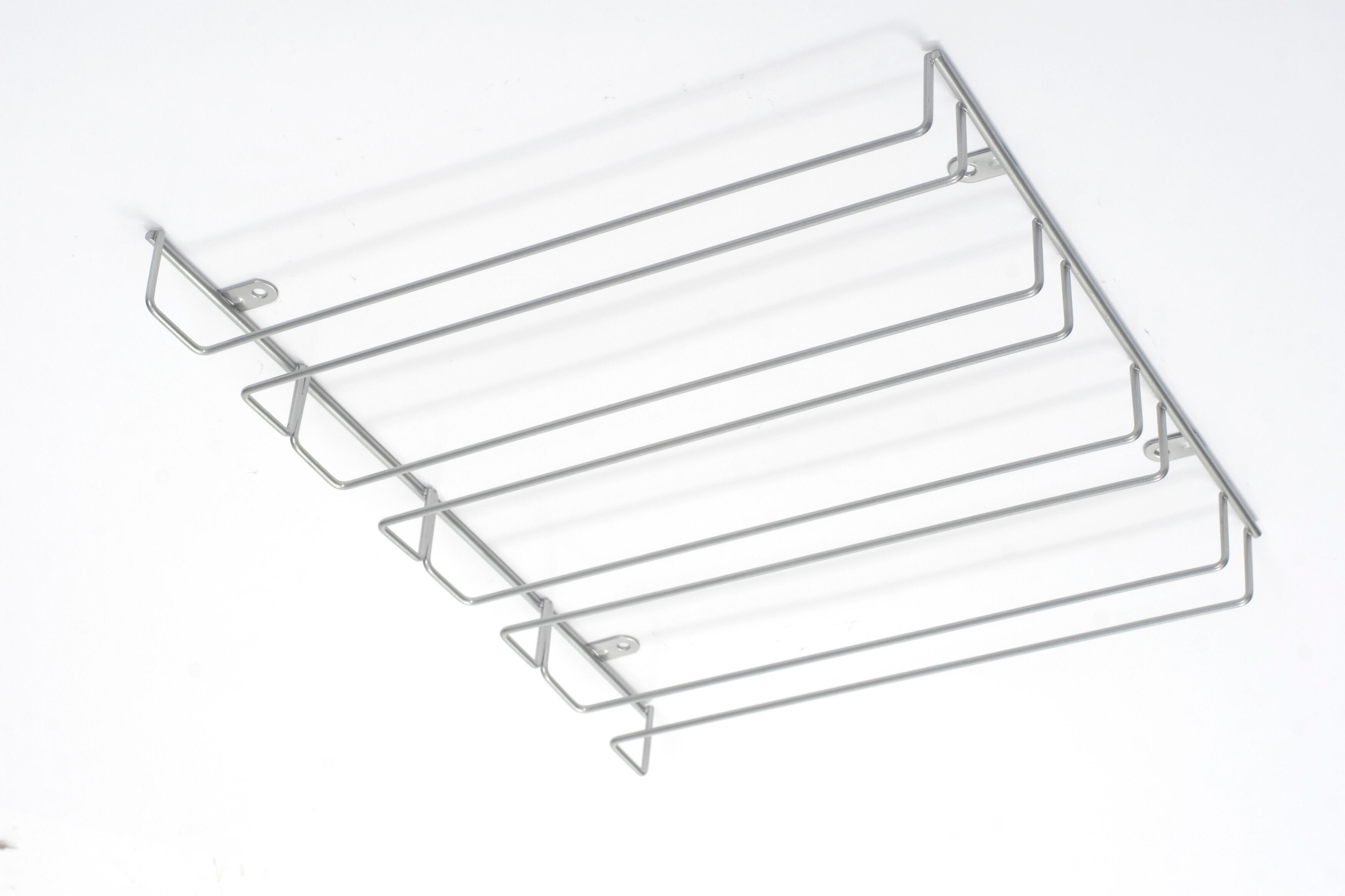 Porte-verres epoxy, idéal pour gagner de l'espace dans vos placards de cuisine. Ce porte verre à pied se visse sous une étagère au dessus de votre plan de travail ou dans un placard. Dimensions : L.36 x H.4 x P.29 cm. Diamètre du fil : 4-3 mm.