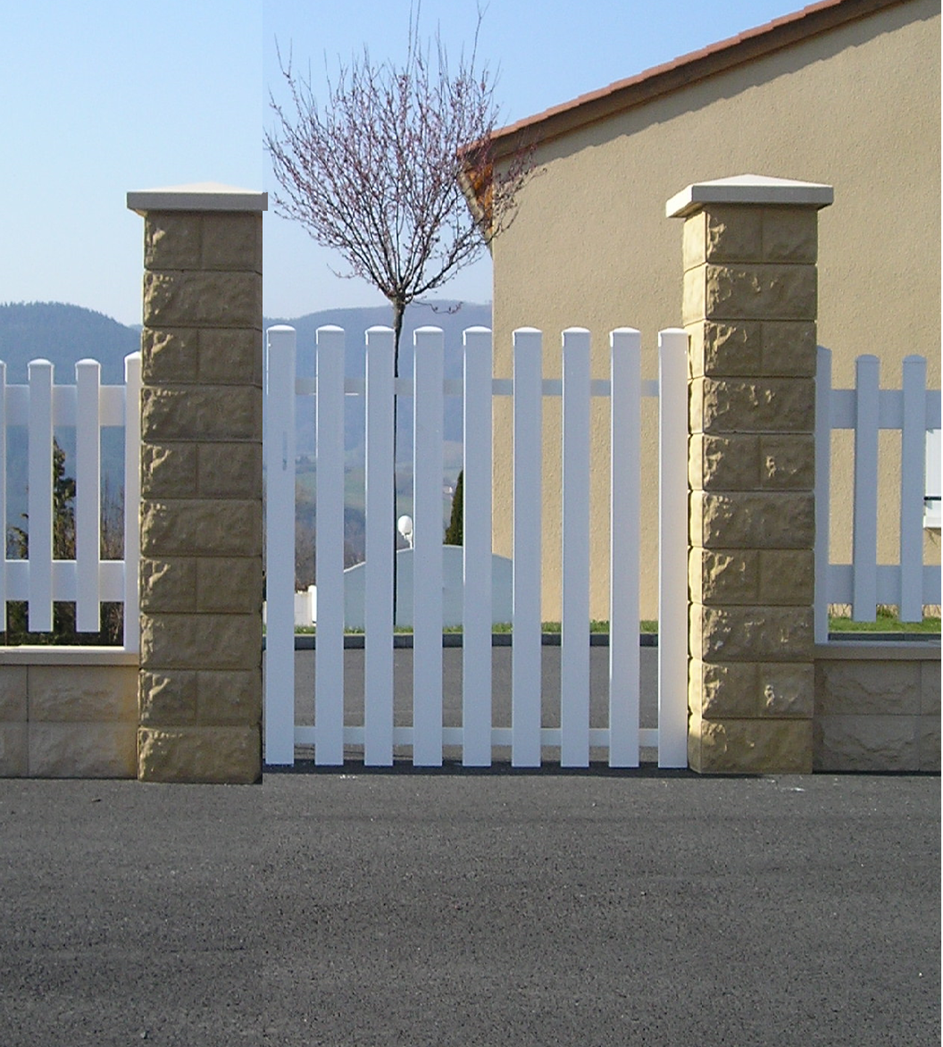 Portillon ajouré PVC recyclé blanc, cadre aluminium, dimensions: L. 1 m x H. 1,2 m avec quincaillerie complète.