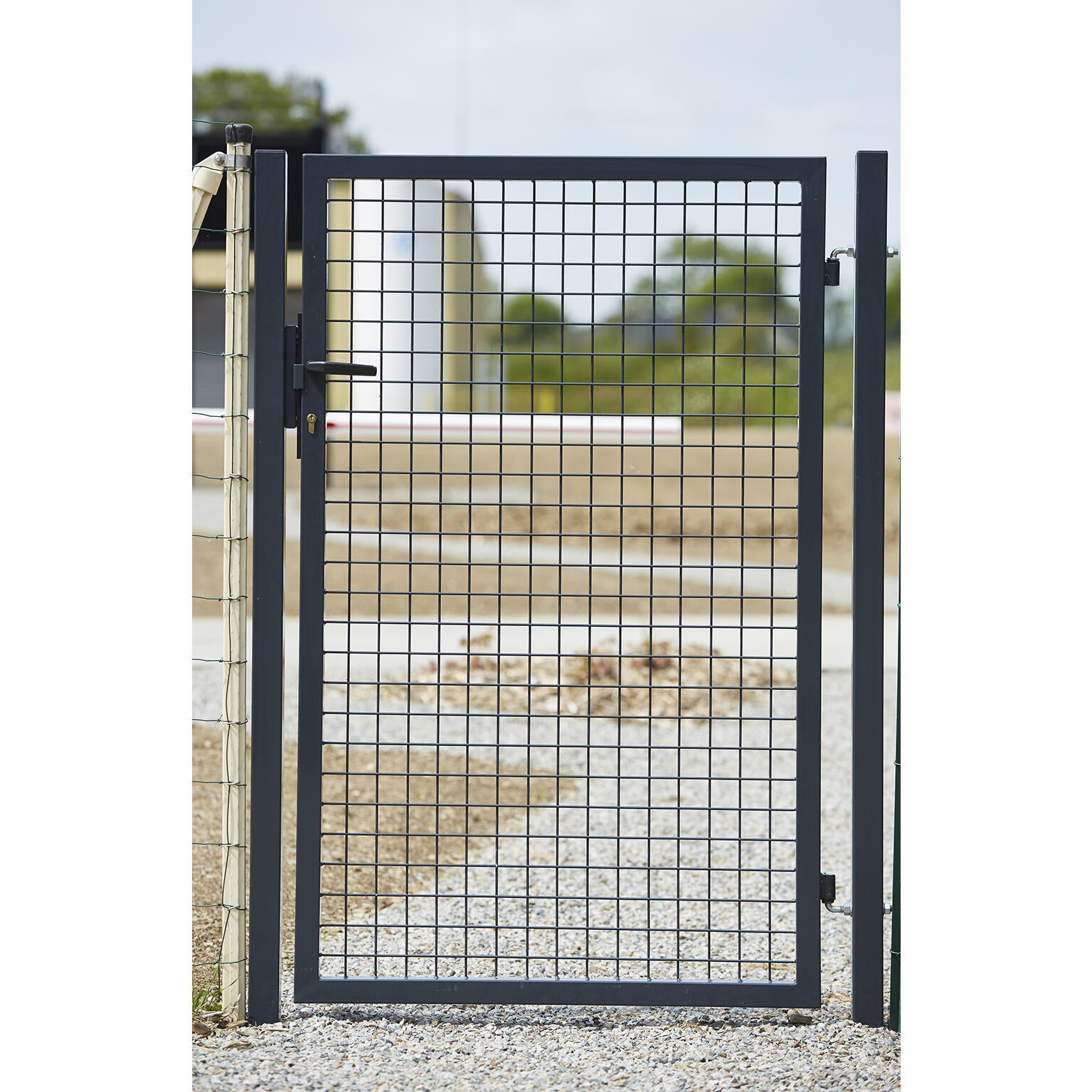 Portillon ECO Garden + Gris - Largeur 1m00 x Hauteur 1m50 - Solution pratique pour fermer un passage - Gâche réversible : double sens d'ouverture - Version à sceller - Finition époxy zinc + poudre polyester - Remplissage Maille 50x50mm - Fermeture par serrure encastrée dans le montant équipée d'un cylindre européen. Non adapté à un environnement agressif type bord de mer.