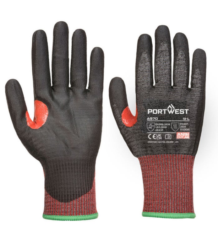 Portwest - Gants anti coupures CS de niveau F Jauge 13 en PU avec renfort pouce - Noir - 9