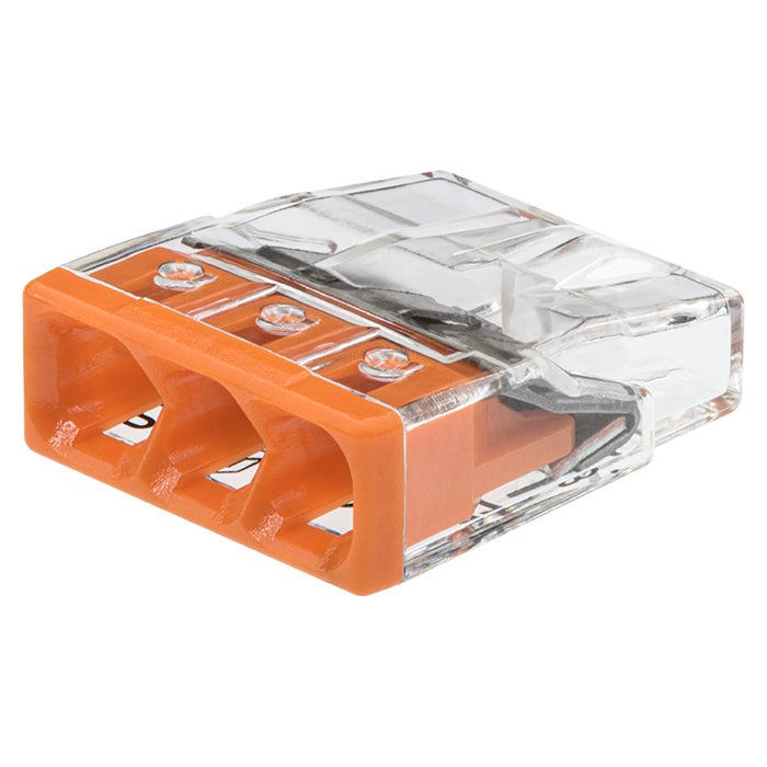 Pot de 50 mini bornes de connexion 3 entrées Borne 51% plus petite que le modèle S273. Nombre total des points de serrage : 3 Tension de référence EN [V] : 450V Surtension transitoire de référence [kV] : 4kV Courant nominal [A] : 24A Type de connexion : PUSH WIRE® Raccordement possible : 0.5 à 2.5 mm² Possibilité de contrôler visuellement la connexion grâce au boîtier transparent Doté d'un point de test Longueur de dénudage : 11 mm Largeur : 10 mm Hauteur : 5.8 mm Profondeur : 16.7 mm