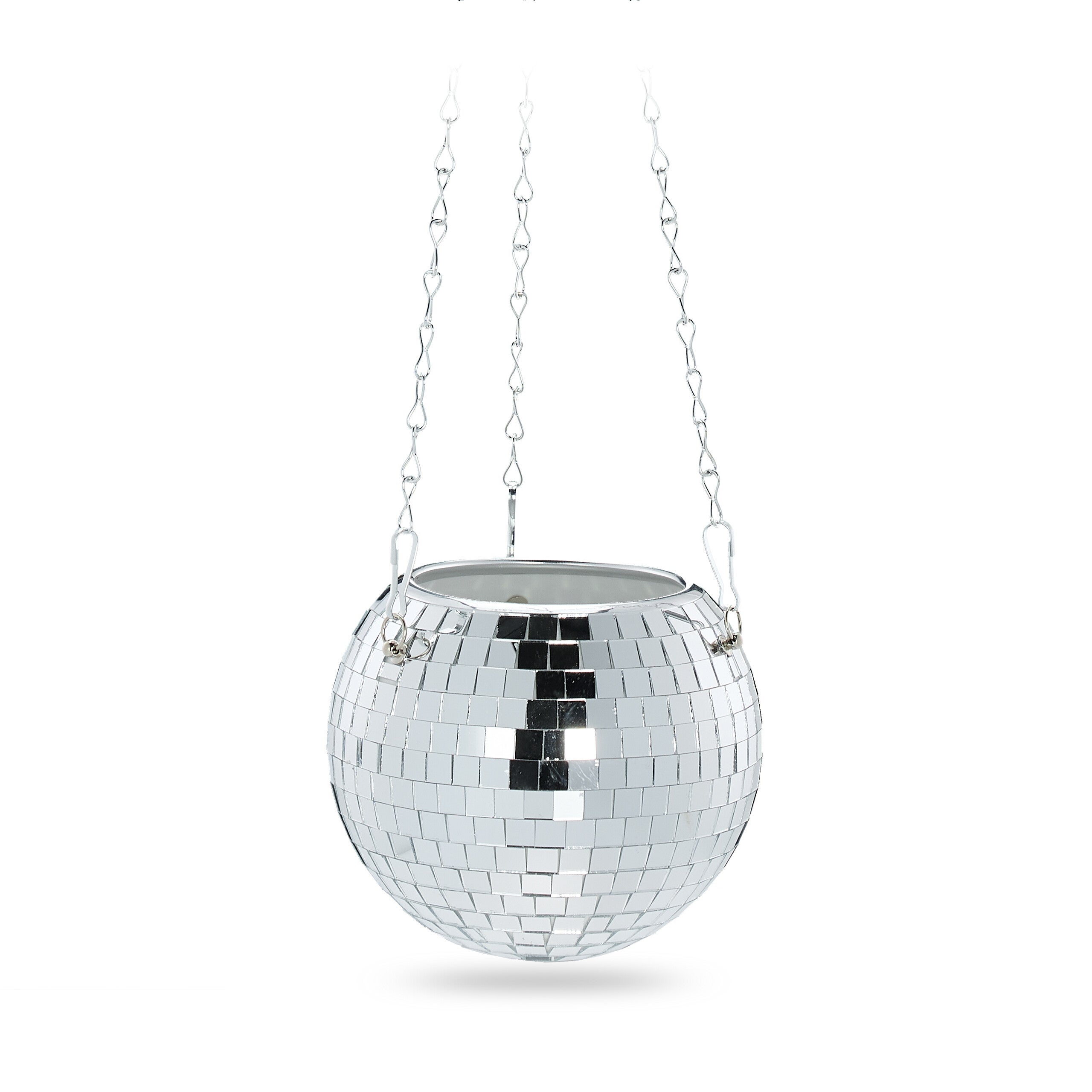 Pot de fleurs boule disco, à suspendre ou à poser, verre, H x D : 13 x 15 cm, plantes, argenté, Relaxdays