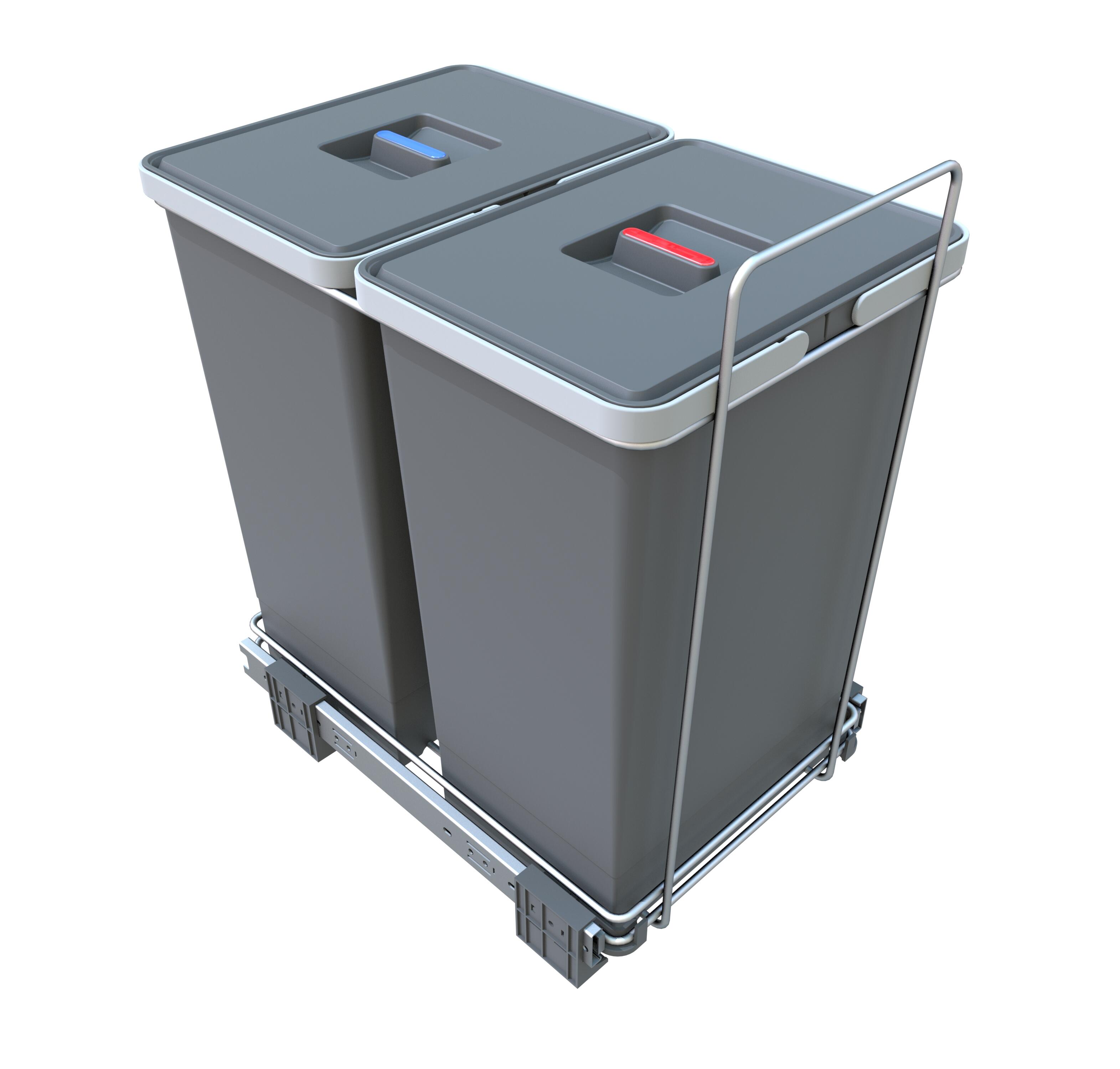 Poubelle coulissante de cuisine 24+24L ELLETIPI Ecofil acier gris