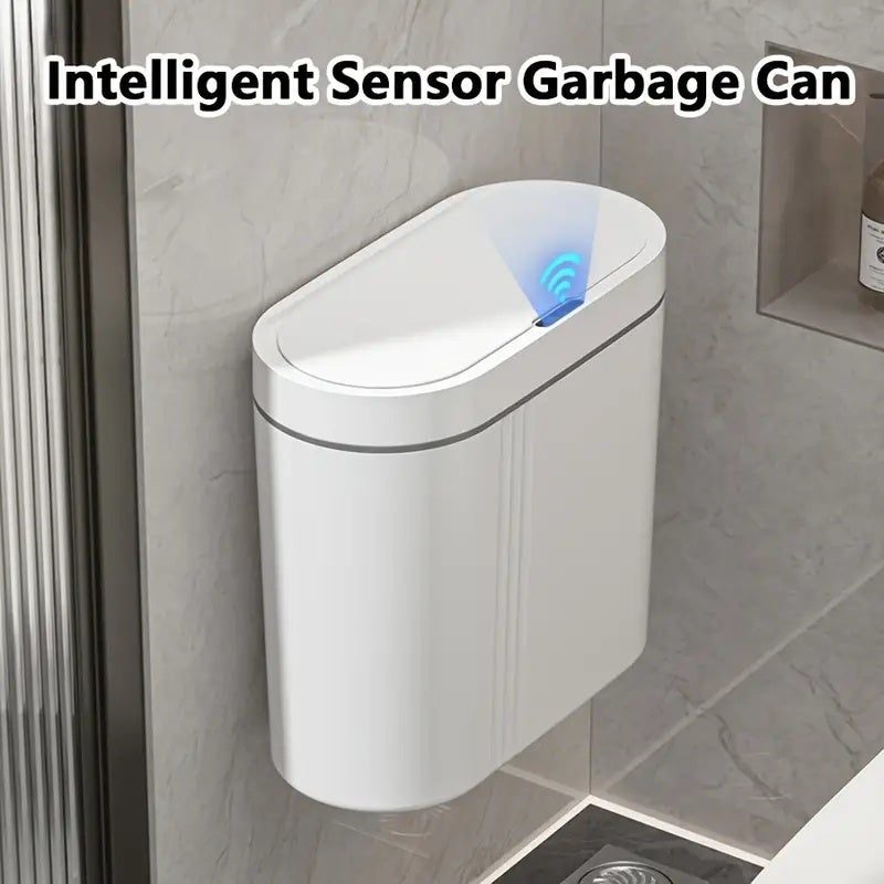 Poubelle murale intelligente avec couvercle à induction infrarouge, réponse rapide du capteur, fonctionnement à piles, blanche