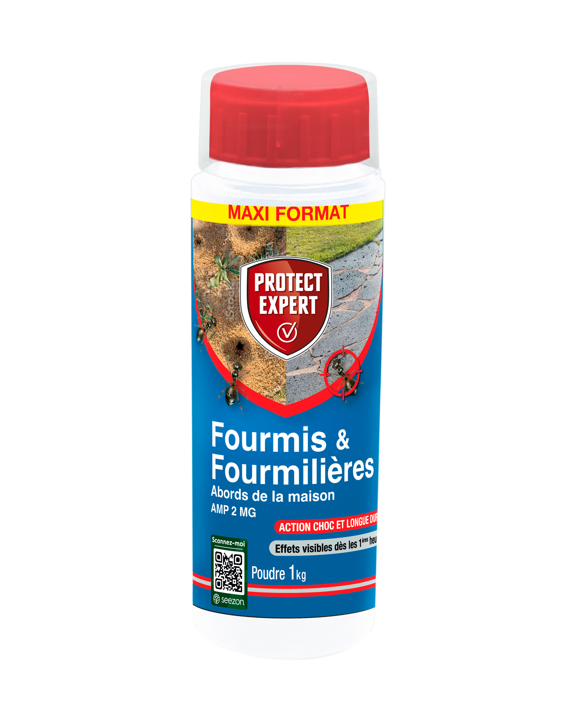 Lutte contre les fourmis noires et fourmilières aux abords immédiats des habitations et des locaux, aux pieds des murs, sur les terrasses, les patios, les allées etc… Après application, les premiers effets sont visibles dès les premières heures. - Action choc et longue durée - Pour poudrage, arrosage ou pulvérisation - Détruit fourmis et fourmilières Î Format forte infestation 1 kg