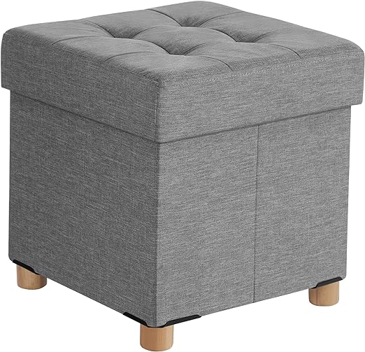 Pouf, Coffre de Rangement, Tabouret avec Repose-Pieds, Pliable, Banc avec Rangement, 38 x 38 x 40 cm, Gris Clair