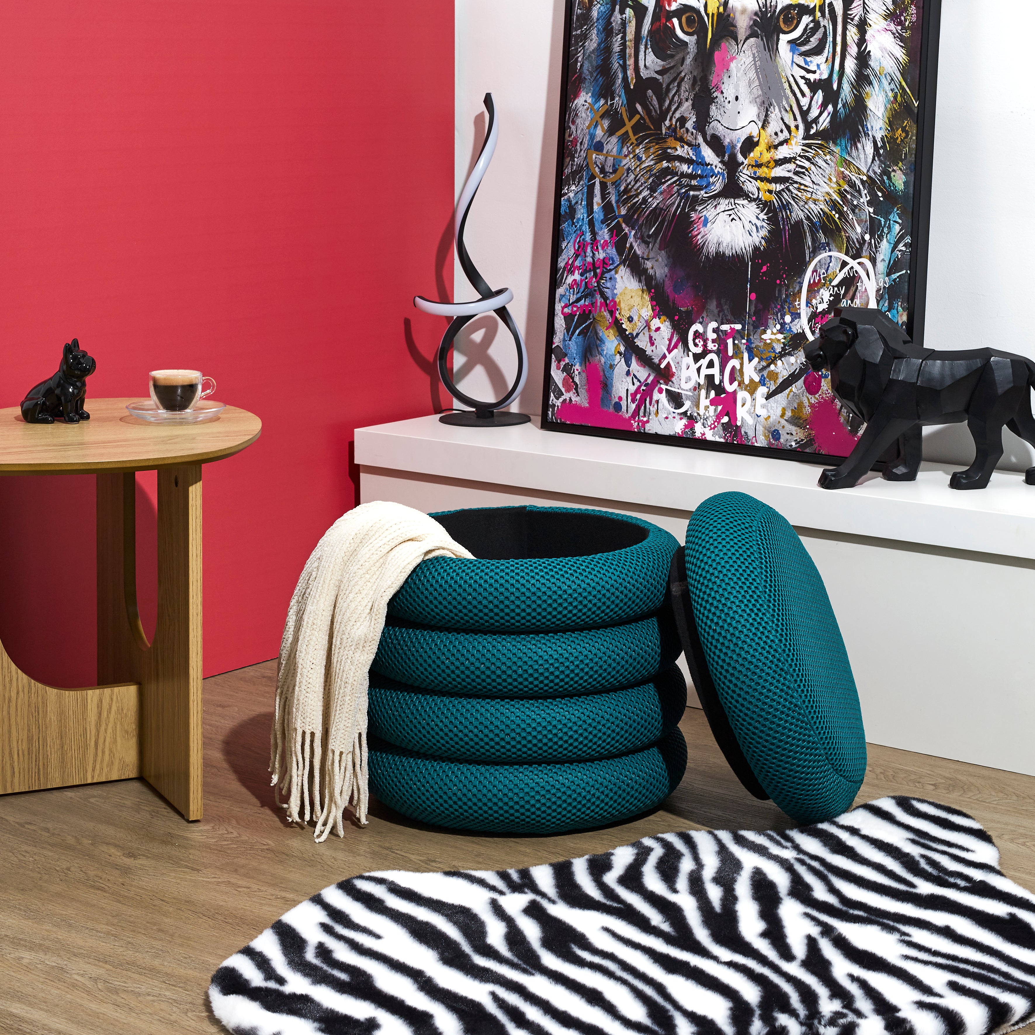 Ce pouf offre un espace de rangement pratique pour vos affaires tout en ajoutant une touche de couleur à votre décoration intérieure. Sa légèreté permet de le déplacer aisément selon vos besoins. Il peut également servir de siège d'appoint lors de réceptions, offrant ainsi une solution polyvalente pour votre intérieur.