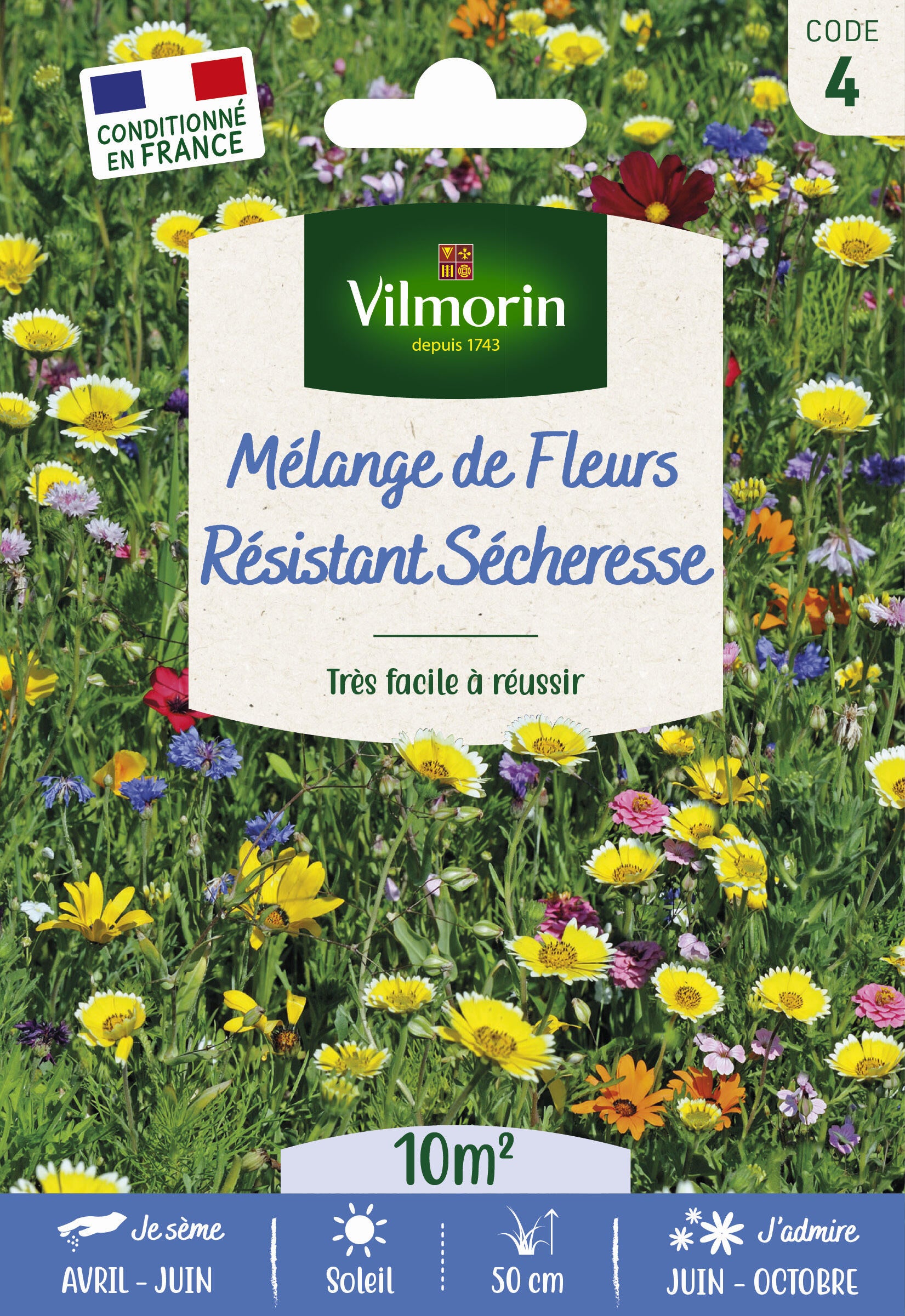 Ce mélange harmonieux est peu gourmand en eau grâce à ses fleurs rustiques susceptibles de résister à des épisodes de sécheresse raisonnables. Ce mélange est composé de Centaurée, Layia, Eschscholtzia, Gypsophile, Coréopsis, Dimorphothéca, Cosmos, Lin et Gaillardia.