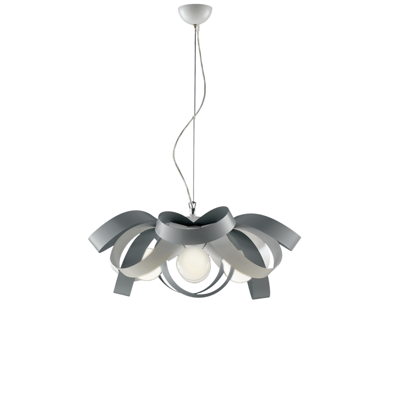 Primula Suspension en fer laqué blanc et gris avec câble acier orientable 4 lumières 138 d.66 BL145-4-BG