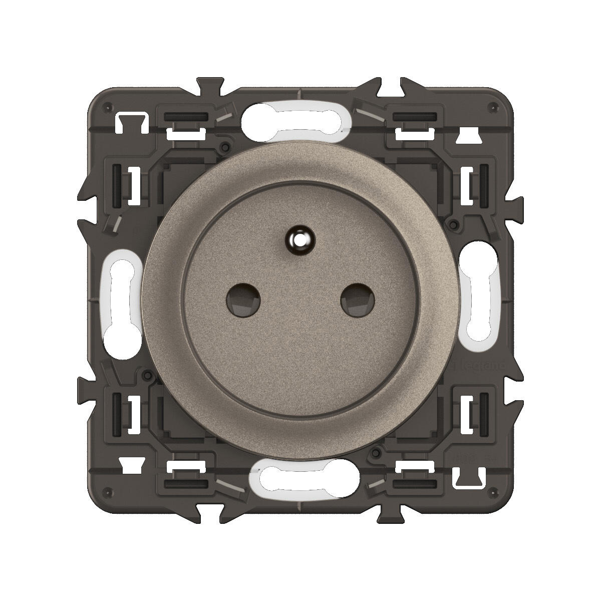 Avec éclips de protection pour protection des enfants Connexion par bornes à vis Finition Titanium, à équiper d'une plaque Céliane