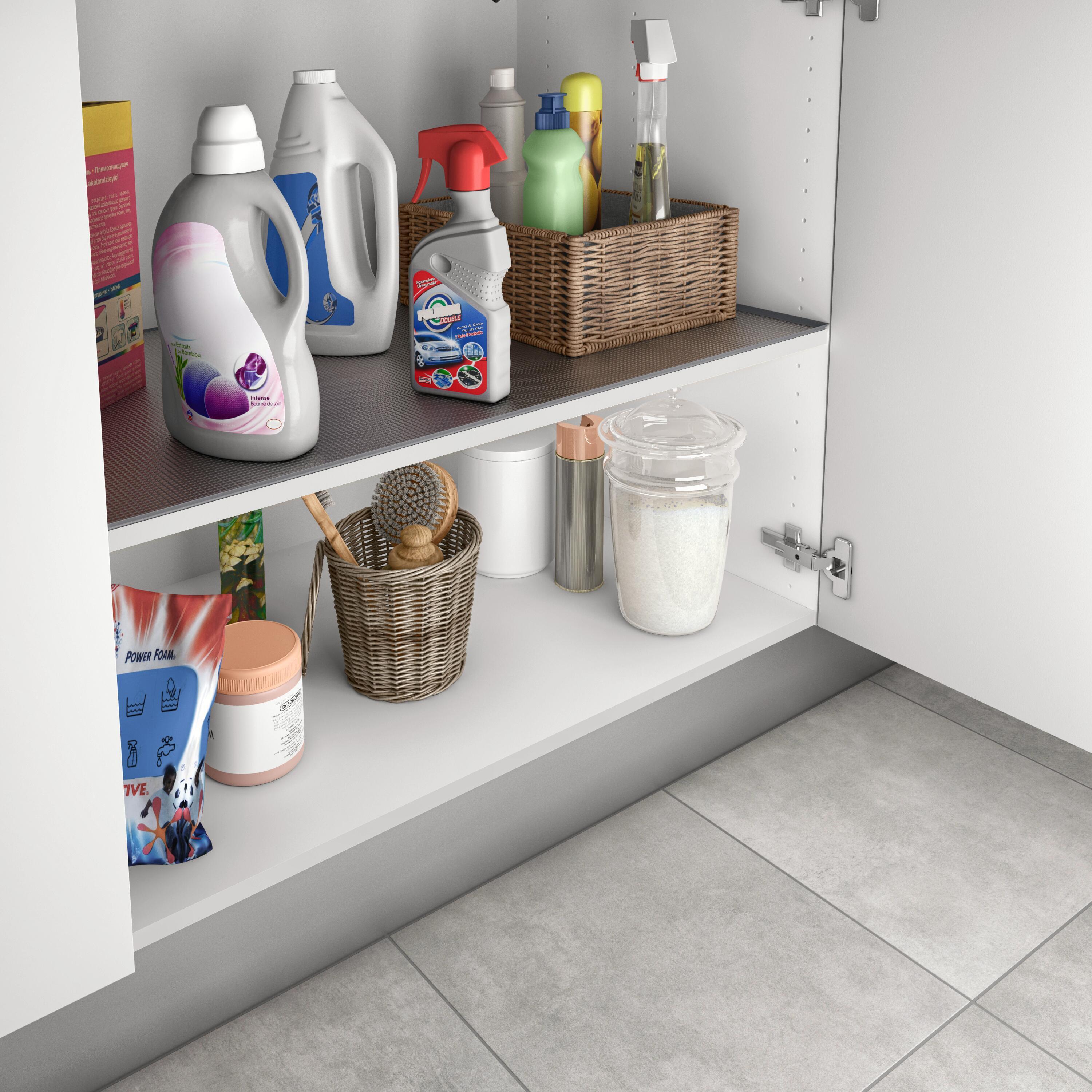 Protection aluminium pour meuble sous-évier Delinia iD largeur 120 cm en cas de fuite d'eau ou lors du nettoyage du siphon. Les rebords en caoutchouc permettent un bon maintien et une étanchéité en cas de fuite d'eau ou découlement. Le fond alvéolé garantie une récupération optimale des liquides et résiste aux rayures. Installation et le nettoyage facile.