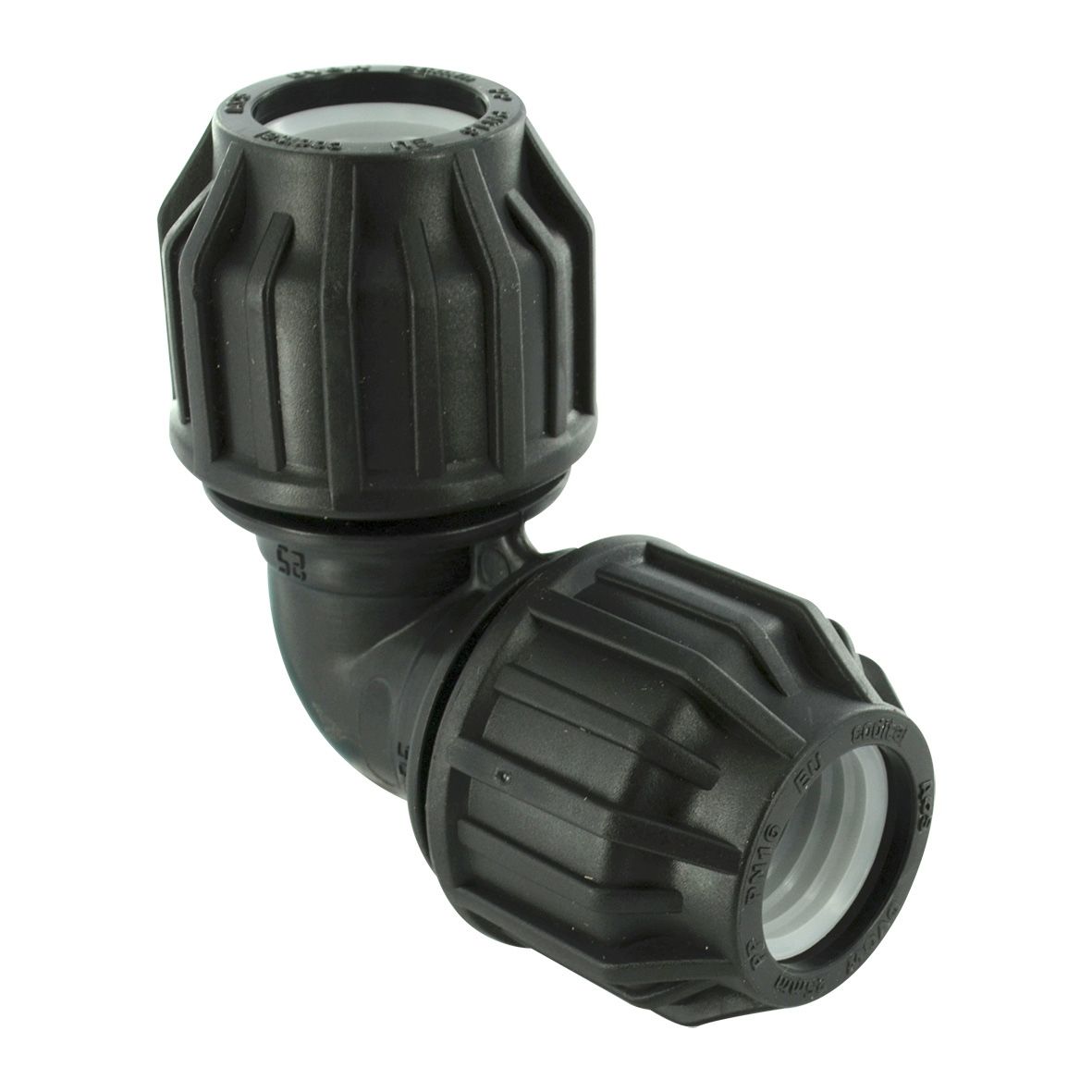 Raccord coudé 90° à compression plastique F 26 x 34 pour pour tube en polyéthylè
