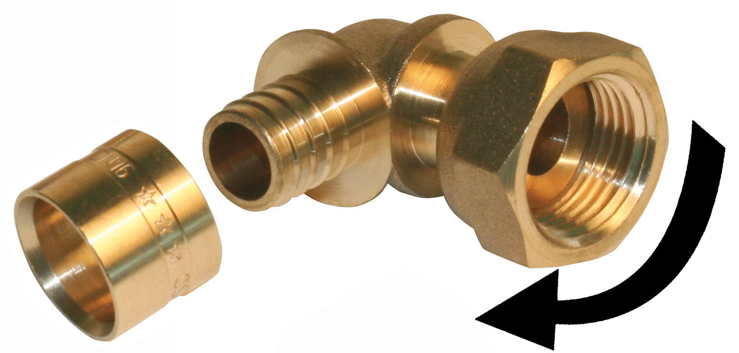 Raccord coudé avec écrou libre à glissement laiton F 15 x 21 pour tube en per