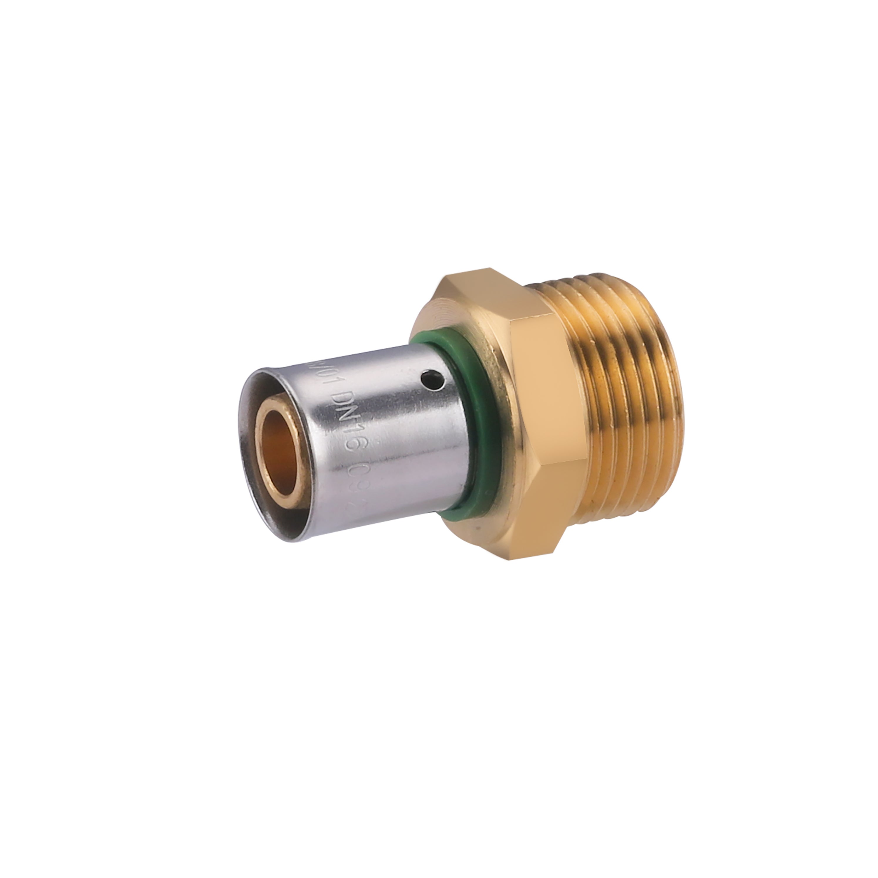 - Raccord à sertir pour tube PER diamètre 16, mâle 3/4" (20x27)